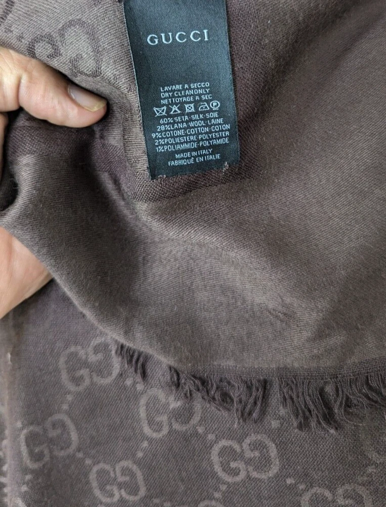 Elevate your style with this Gucci Large Shawl Wrap, featuring a trendy GG Logo pattern in brown color. The wrap is made of high-quality 1% polymide, 2% polyester, 60% silk, 9% cotton, and 28% wool materials, ensuring durability and comfort. It has a size of 142.5 cm in both length and width, making it a perfect accessory for women of all ages. This multifunctional shawl/wrap can be worn in various ways such as scarf, shawl, and wrap. Dry clean only to maintain its quality. Note : You will get the exact same item as shown in pictures. if any body wants more pictures or videos of it you can ask me for thanks for bidding. All parcels will be shipped via Express shipping service like DHL, Fedx, Usps etc. Usually this service delivers between 5-14 days in case of extra custom charges or delays of buyer's country is not our responsibility so please make sure of your country's custom policies before making an offer or bid. thanks a lot