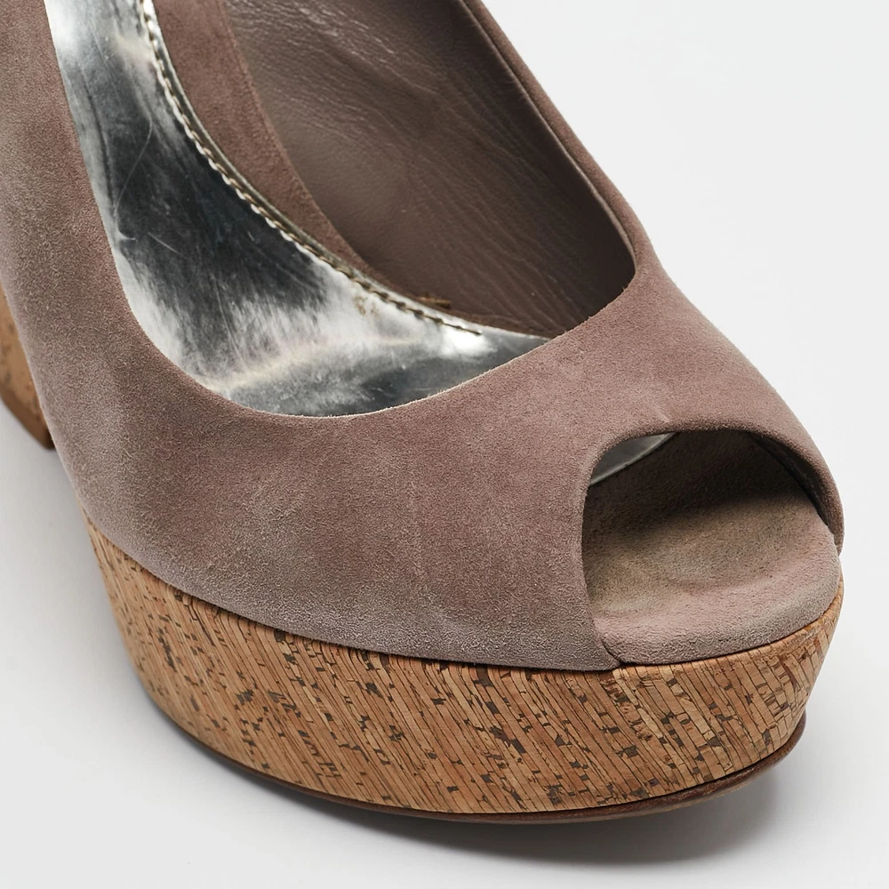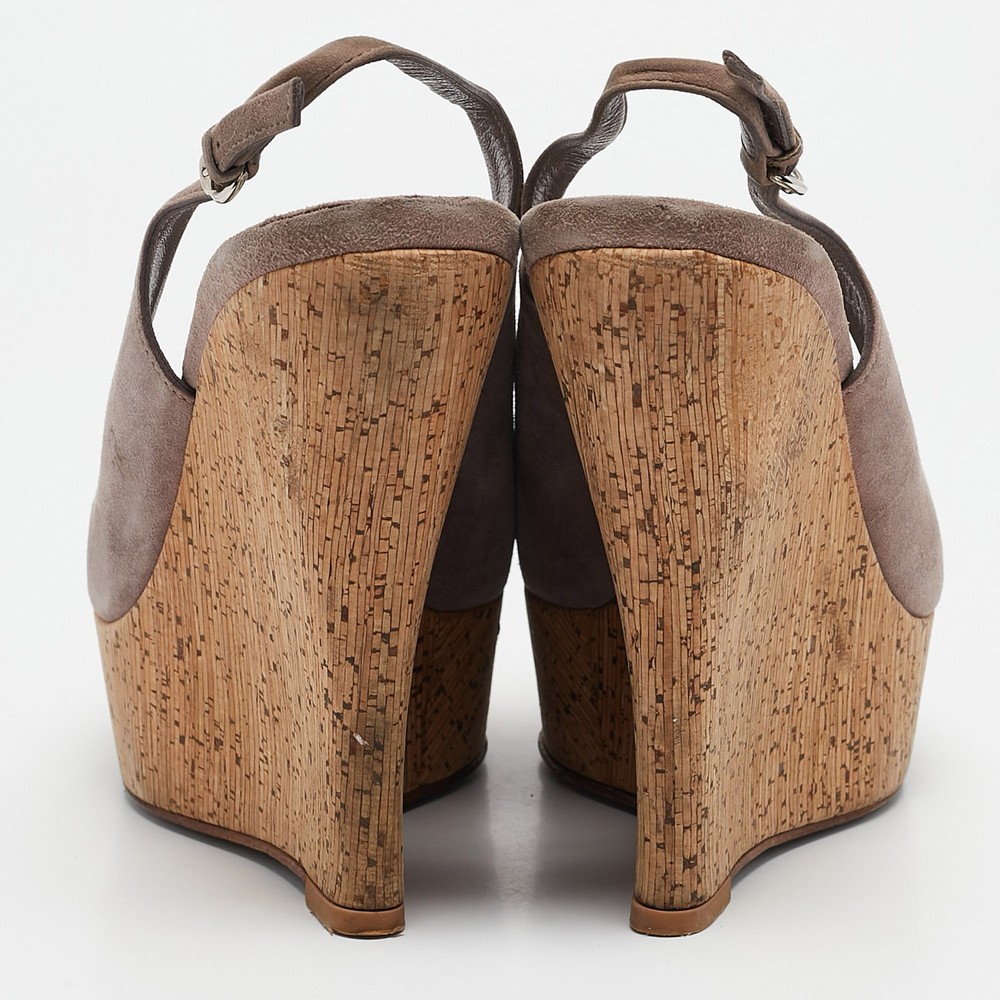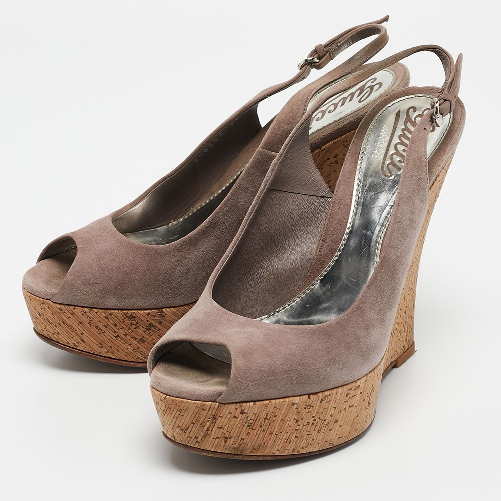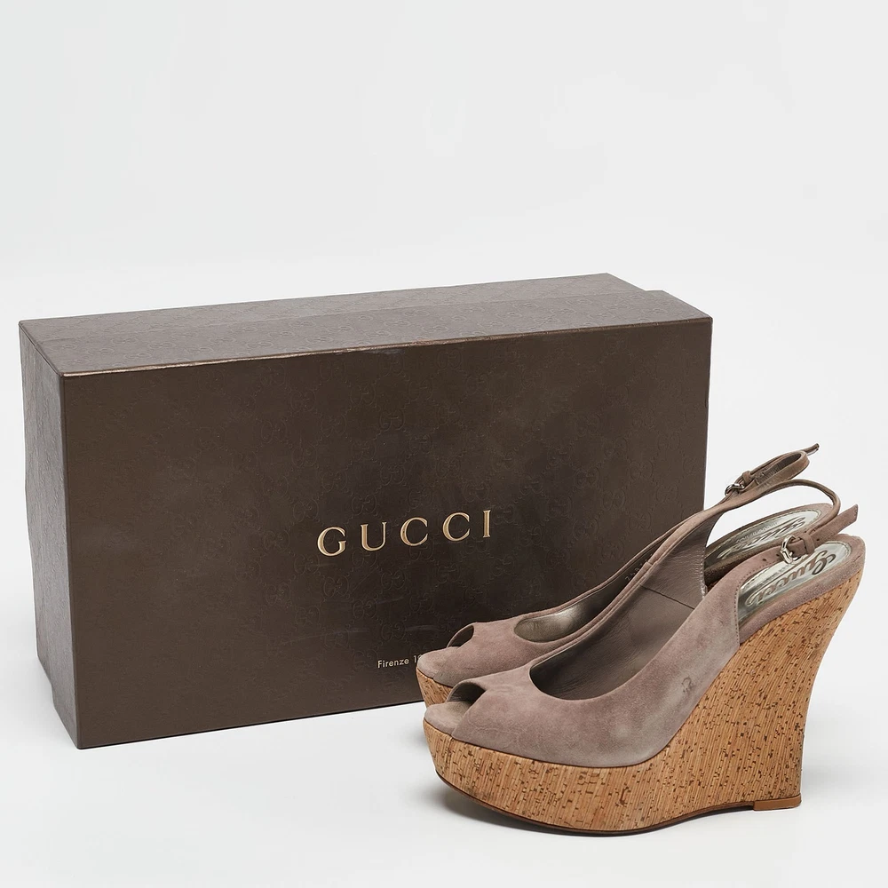 Effortlessly chic, these Gucci mauve sandals feature a cork wedge that adds height and comfort. Their soft suede straps exude understated elegance, making them a versatile addition to your summer wardrobe. Perfect for casual outings or elevating a breezy sundress.Certified by The Luxury Closet - This item has gone through a detailed authentication process overseen by our experts. We offer a lifetime guarantee of authenticity on all our items. Import duties, taxes and charges are not included in the item price. These charges are the buyers responsibility. Please check with your country’s customs office to determine what these additional cost will be prior to buying. Our eBay Store About Us Contact Us Add to Favorite Sellers Gucci Mauve Suede Cork Wedge Sandals Size 38 $163.9 Effortlessly chic, these Gucci mauve sandals feature a cork wedge that adds height and comfort. Their soft suede straps exude understated elegance, making them a versatile addition to your summer wardrobe. Perfect for casual outings or elevating a breezy sundress. Product Details Brand Color Purple Dimensions Material Suede Size 38 Outsole Width 8 cm Outsole Length 22.5 cm Heel Height 14 cm Includes Original Box Certified by The Luxury Closet This item has gone through a detailed authentication process overseen by our experts. We offer a lifetime guarantee of authenticity on all our items. How We Check The in-house team of experts at The Luxury Closet is highly trained to verify the authenticity and the condition of the luxury products. They ensure that only 100% authentic items are put on sale.The evaluation process is unique with its own mix of assessment criteria and differs according to the category. Each item is evaluated based on the following combination of hallmarks, hardware, stitching, symmetry, material, craftsmanship, stamping, codes, hologram stickers, and packaging. Our authenticators also check if the items have been modified or amended (e.g., aftermarket diamonds, replaced batteries, repaired bags, etc.) International Buyers Import duties, taxes and charges are not included in the item price. These charges are the buyers responsibility. Please check with your country’s customs office to determine what these additional cost will be prior to buying.