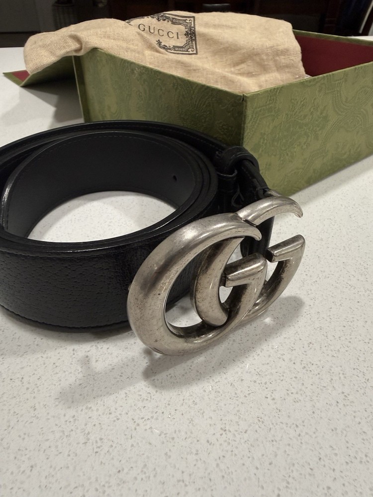 $ 5.28Skinny Unisex Gucci Belt GG Black Leather 1 Inch Size 85/34 For 4-6 Pants