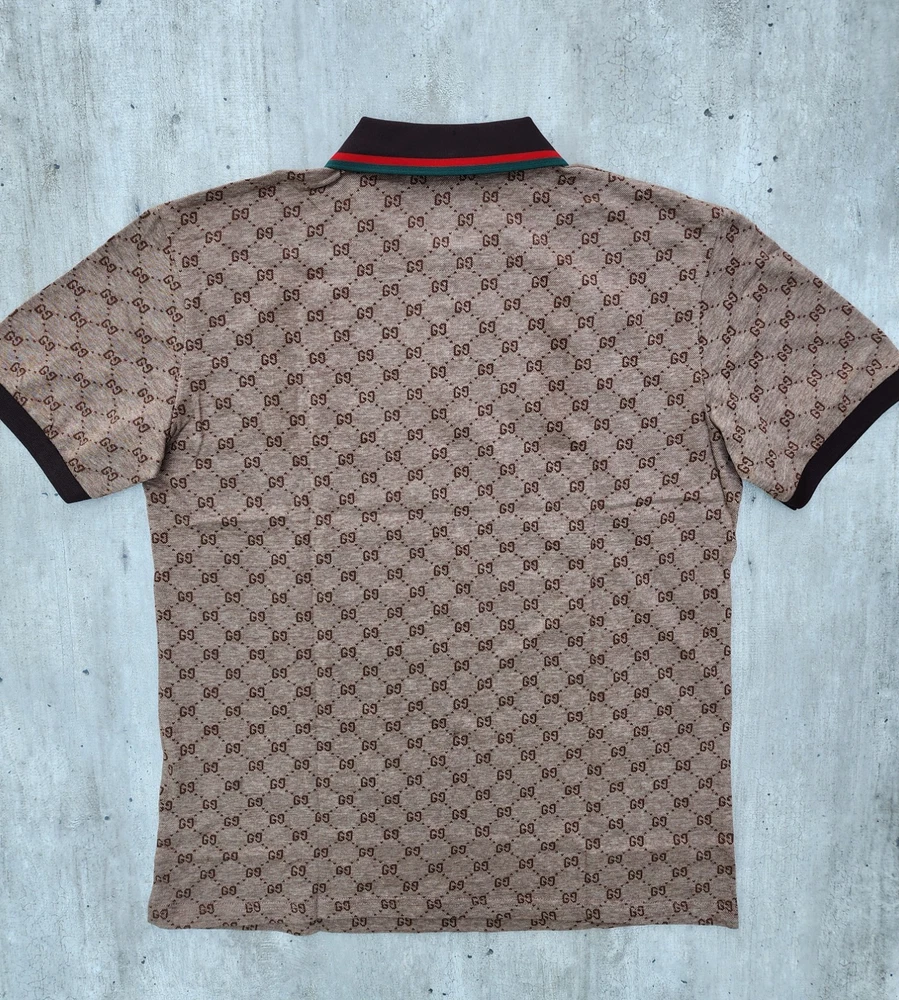 Polo Shirt Men's Gucci Regular Fit Excellent condition not have defect cotton button closure spread gg Classic polo Color Brown Tags inside outside Size XL Chest 59 Cm Length 80 Cm