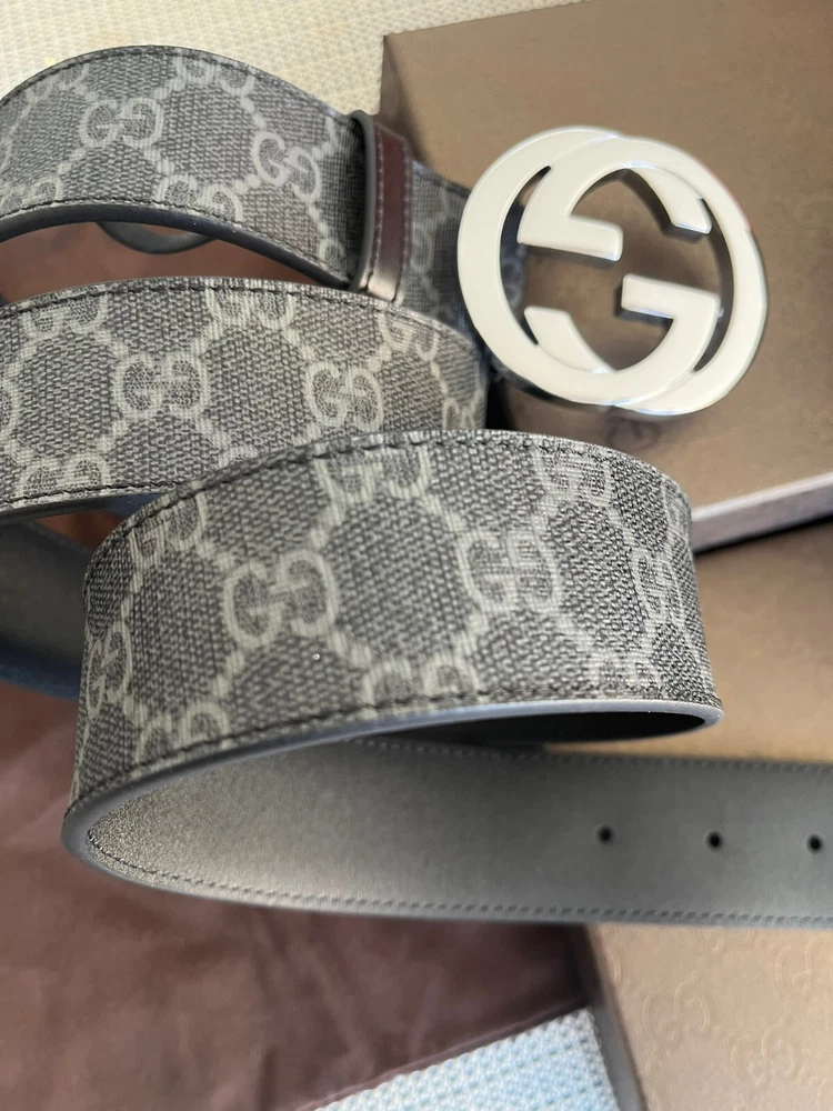 Gucci Men's GG Monogram Supreme Black/Gray Leather Belt Size 115cm, 40-42 waist, in Excellent Condition like NEW, Comes with BOX & DUST BAG.