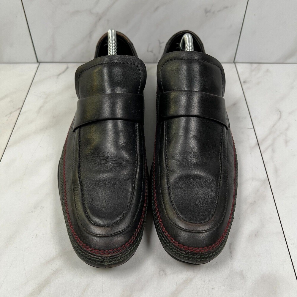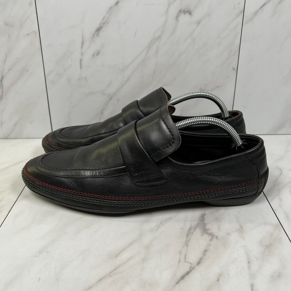 Gucci Mens Size 7 E Wide [EU 40.5] Black Contrast Stitch Leather Slip On Loafers Condition: Pre-owned No rips, holes, or tears. Smoke-free. No box. See all photos for exact condition. We ship every weekday! All orders placed Friday-Sunday will be sent out on Monday. Please be sure to reference each photo for the item's condition and message us with any questions! Thank you for checking out our product, please feel free to browse my store as well for other great deals!