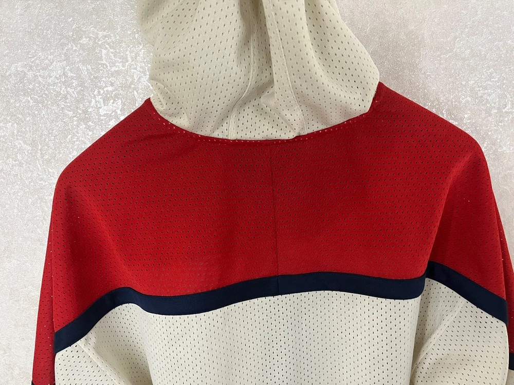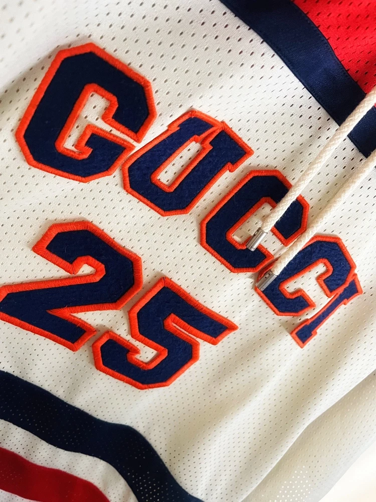 Gucci Mesh Hoodie - Red, White & Navy - Size S This Gucci mesh hoodie fuses luxury with a bold athletic aesthetic. Featuring varsity-style "GUCCI 25" embroidery, it stands out with its red, white, and navy colorway and breathable perforated mesh construction. Measurements (flat): Chest (pit to pit): 56 cm / 22 in Length (shoulder to hem): 73 cm / 28.7 in Sleeve length: 36 cm / 14.2 in Purchased in May 2023 from Selfridges, London. Proof of Purchase available. 100% Authentic Size Small with a loose, baggy fit - designed for a relaxed, oversized silhouette Short sleeves with drawstring hood Retro-inspired colorblock stripes Lightweight and ideal for layering or casual wear Shipping & Delivery Once paid, item is shipped within 1-2 business days. Items are shipped via Emirates Post Tracked Expedited Global Shipping Service. Items arrive globally on average between 3-8 Days depending on the country. Based on previous shipments: USA 4/5 Days France 5 Days Australia 6/8 Days South Africa 7 Days All the items I sell come with free shipping (unless stated otherwise) and I’m happy to accommodate you with a faster shipping service upon request; I would only charge the price difference. Returns: Accepted within 14 days under eBay’s policy. Item must be in original condition with tags/packaging. Returns showing signs of wear, washing, or odors may be denied. Buyer pays return shipping unless not as described.