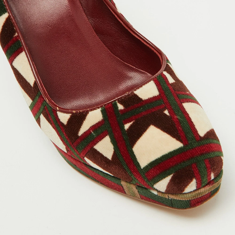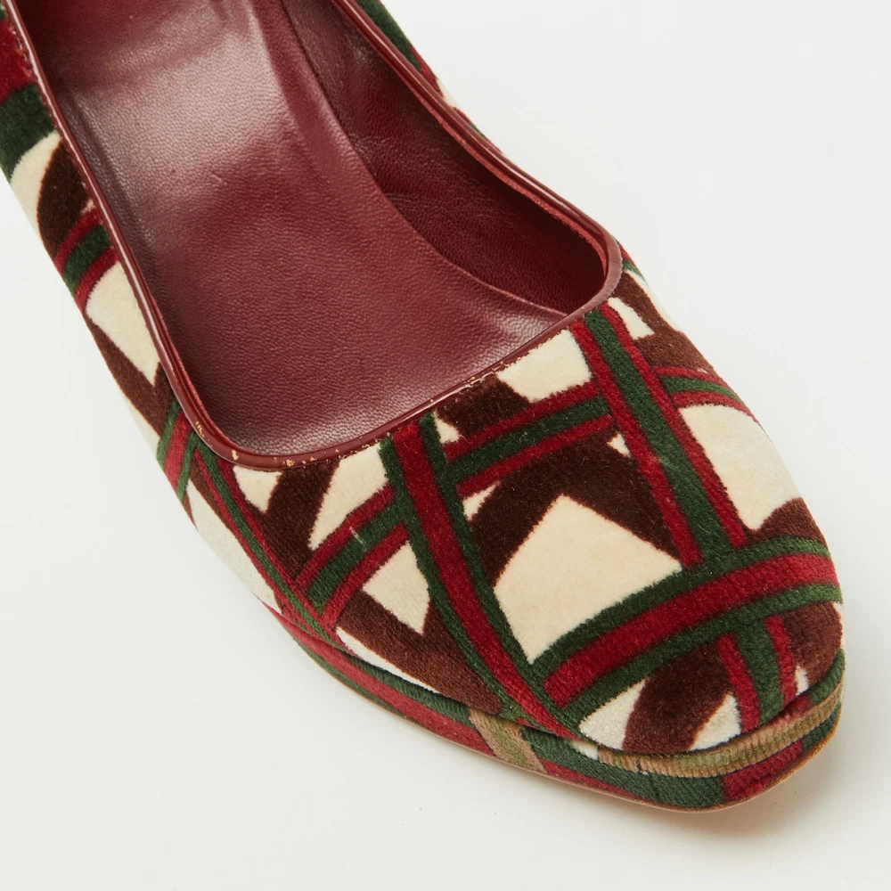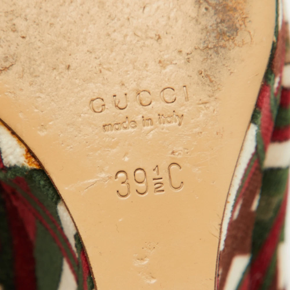 The fashion house’s tradition of excellence, coupled with modern design sensibilities, works to make these Gucci wedge pumps a fabulous choice. Theyll help you deliver a chic look with ease.Certified by The Luxury Closet - This item has gone through a detailed authentication process overseen by our experts. We offer a lifetime guarantee of authenticity on all our items. Import duties, taxes and charges are not included in the item price. These charges are the buyers responsibility. Please check with your country’s customs office to determine what these additional cost will be prior to buying. Our eBay Store About Us Contact Us Add to Favorite Sellers Gucci Multicolor Pattern Velvet Platform Wedge Pumps Size 39.5 $187 The fashion house’s tradition of excellence, coupled with modern design sensibilities, works to make these Gucci wedge pumps a fabulous choice. Theyll help you deliver a chic look with ease. Product Details Brand Color Multicolor Dimensions Material Velvet Size 39.5 Outsole Width 7.5 cm Outsole Length 26 cm Heel Height 11.5 cm Includes The Luxury Closet Packaging Certified by The Luxury Closet This item has gone through a detailed authentication process overseen by our experts. We offer a lifetime guarantee of authenticity on all our items. How We Check The in-house team of experts at The Luxury Closet is highly trained to verify the authenticity and the condition of the luxury products. They ensure that only 100% authentic items are put on sale.The evaluation process is unique with its own mix of assessment criteria and differs according to the category. Each item is evaluated based on the following combination of hallmarks, hardware, stitching, symmetry, material, craftsmanship, stamping, codes, hologram stickers, and packaging. Our authenticators also check if the items have been modified or amended (e.g., aftermarket diamonds, replaced batteries, repaired bags, etc.) International Buyers Import duties, taxes and charges are not included in the item price. These charges are the buyers responsibility. Please check with your country’s customs office to determine what these additional cost will be prior to buying.