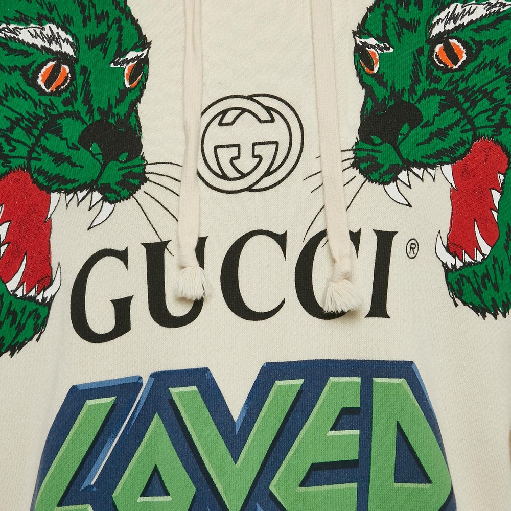 A striking combination of luxury and bold design, this Gucci hoodie features an off white cotton base adorned with a fierce tiger graphic. The relaxed silhouette and signature Gucci aesthetic make it a standout addition to any wardrobe.Certified by The Luxury Closet - This item has gone through a detailed authentication process overseen by our experts. We offer a lifetime guarantee of authenticity on all our items. Import duties, taxes and charges are not included in the item price. These charges are the buyers responsibility. Please check with your country’s customs office to determine what these additional cost will be prior to buying. Our eBay Store About Us Contact Us Add to Favorite Sellers Gucci Off White Tiger Print Cotton Hoodie S $412.5 A striking combination of luxury and bold design, this Gucci hoodie features an off white cotton base adorned with a fierce tiger graphic. The relaxed silhouette and signature Gucci aesthetic make it a standout addition to any wardrobe. Product Details Brand Color Beige Dimensions Material Cotton Knit Size S Outsole Width Outsole Length Heel Height Includes The Luxury Closet Packaging Certified by The Luxury Closet This item has gone through a detailed authentication process overseen by our experts. We offer a lifetime guarantee of authenticity on all our items. How We Check The in-house team of experts at The Luxury Closet is highly trained to verify the authenticity and the condition of the luxury products. They ensure that only 100% authentic items are put on sale.The evaluation process is unique with its own mix of assessment criteria and differs according to the category. Each item is evaluated based on the following combination of hallmarks, hardware, stitching, symmetry, material, craftsmanship, stamping, codes, hologram stickers, and packaging. Our authenticators also check if the items have been modified or amended (e.g., aftermarket diamonds, replaced batteries, repaired bags, etc.) International Buyers Import duties, taxes and charges are not included in the item price. These charges are the buyers responsibility. Please check with your country’s customs office to determine what these additional cost will be prior to buying.