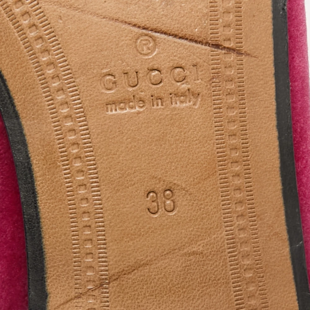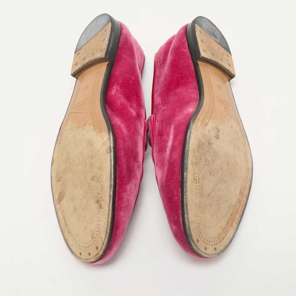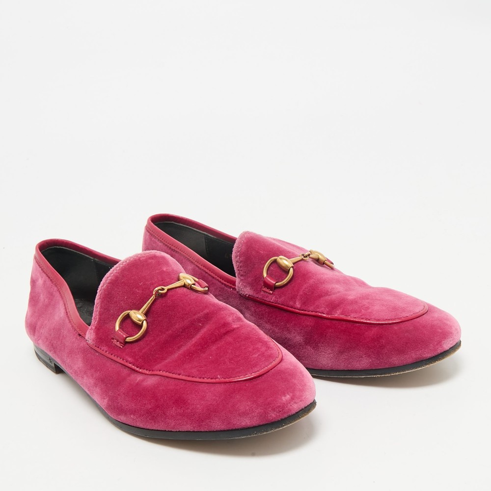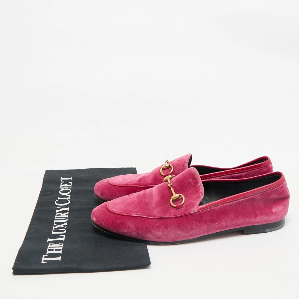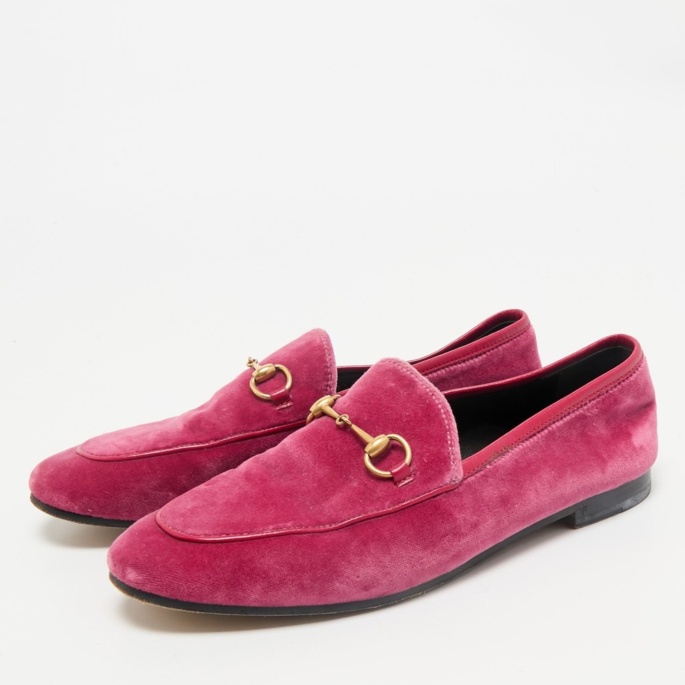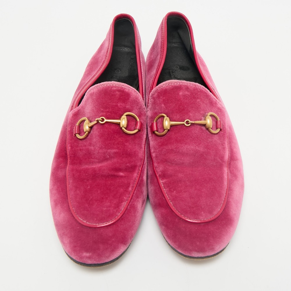 Lush and luxurious, these Gucci Jordaan loafers are enveloped in plush pink velvet and finished with the brand’s signature horsebit detail. A standout piece that merges classic tailoring with a playful, opulent twist.Certified by The Luxury Closet - This item has gone through a detailed authentication process overseen by our experts. We offer a lifetime guarantee of authenticity on all our items. Import duties, taxes and charges are not included in the item price. These charges are the buyers responsibility. Please check with your country’s customs office to determine what these additional cost will be prior to buying. Our eBay Store About Us Contact Us Add to Favorite Sellers Gucci Pink Velvet Jordaan Horsebit Slip On Loafers Size 38 $385 Lush and luxurious, these Gucci Jordaan loafers are enveloped in plush pink velvet and finished with the brand’s signature horsebit detail. A standout piece that merges classic tailoring with a playful, opulent twist. Product Details Brand Color Pink Dimensions Material Velvet Size 38 Outsole Width Outsole Length Heel Height Includes Certified by The Luxury Closet This item has gone through a detailed authentication process overseen by our experts. We offer a lifetime guarantee of authenticity on all our items. How We Check The in-house team of experts at The Luxury Closet is highly trained to verify the authenticity and the condition of the luxury products. They ensure that only 100% authentic items are put on sale.The evaluation process is unique with its own mix of assessment criteria and differs according to the category. Each item is evaluated based on the following combination of hallmarks, hardware, stitching, symmetry, material, craftsmanship, stamping, codes, hologram stickers, and packaging. Our authenticators also check if the items have been modified or amended (e.g., aftermarket diamonds, replaced batteries, repaired bags, etc.) International Buyers Import duties, taxes and charges are not included in the item price. These charges are the buyers responsibility. Please check with your country’s customs office to determine what these additional cost will be prior to buying.