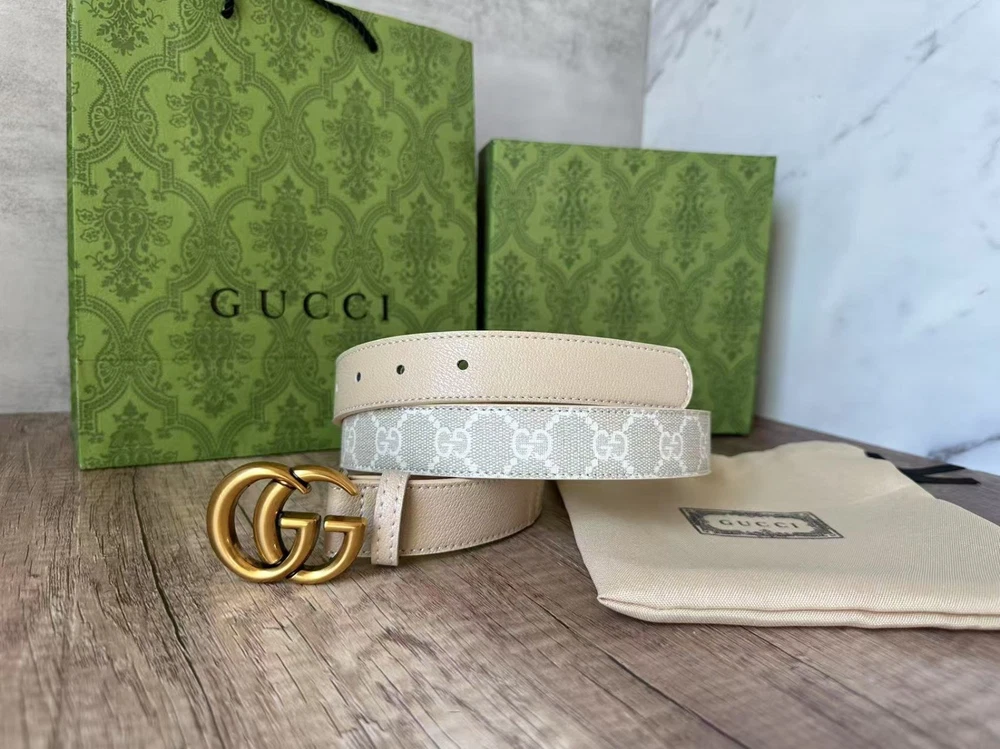 Gucci G Logo Reversible Leather Belt Women Size 80 32 Authentic Unused