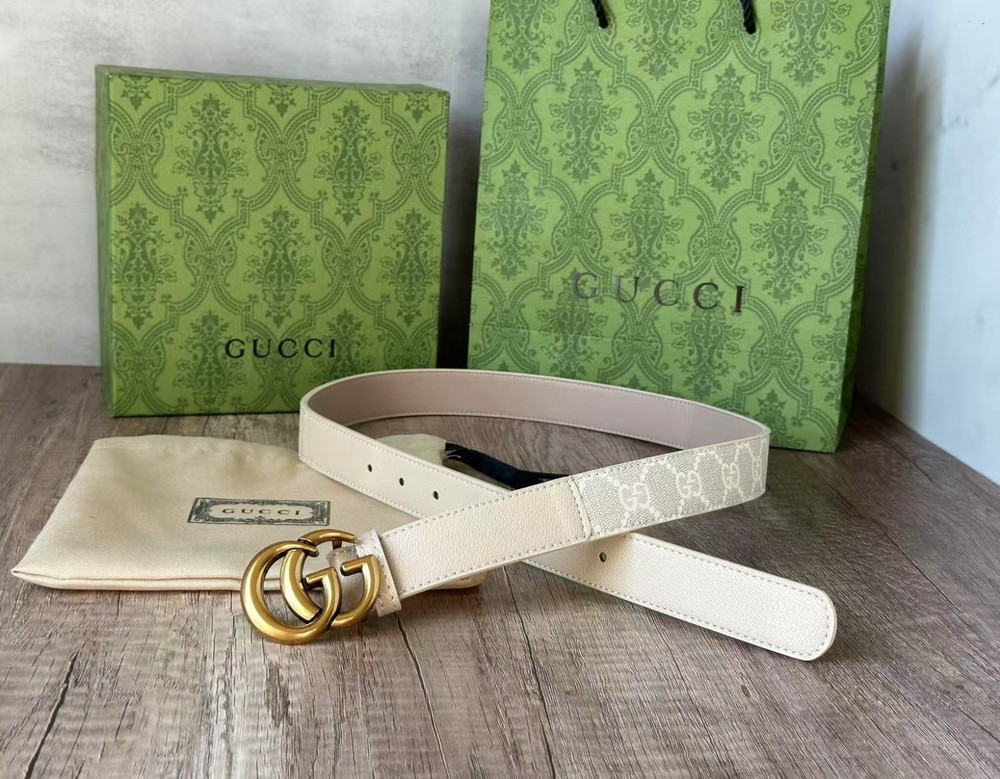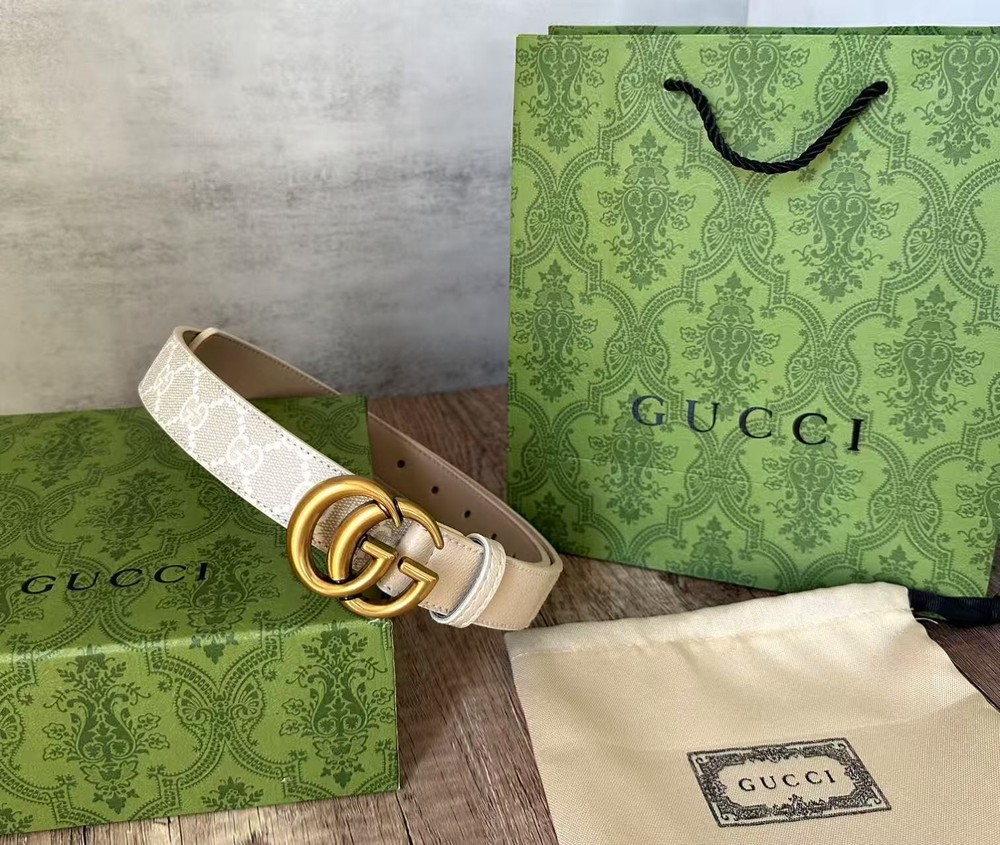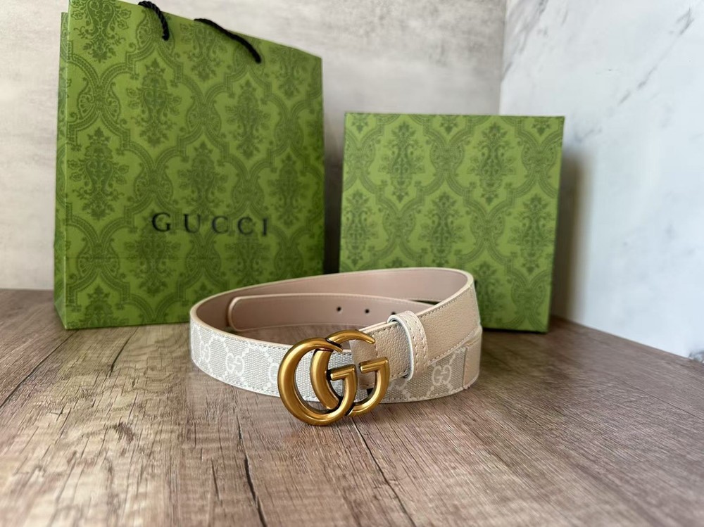 $ 125.67Gucci Beige Leather Belt with Gold Buckle Classic Logo for Women Authentic