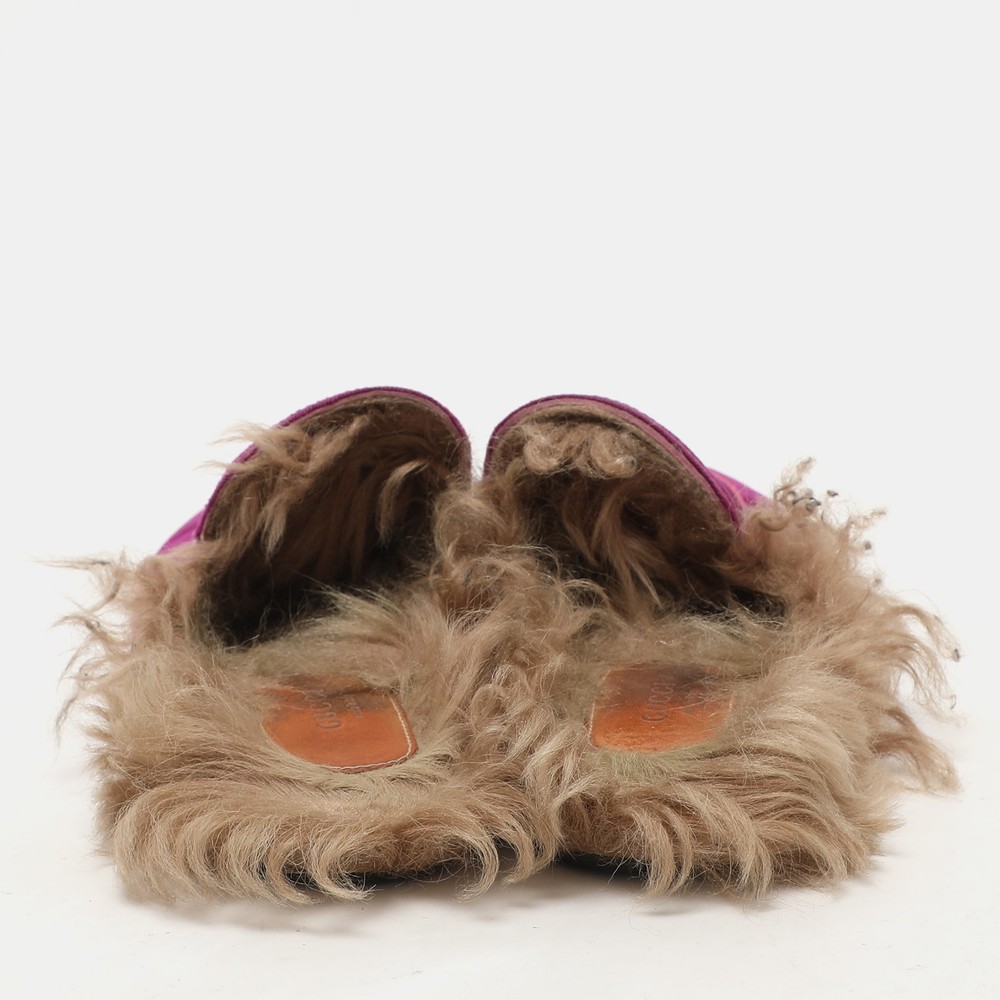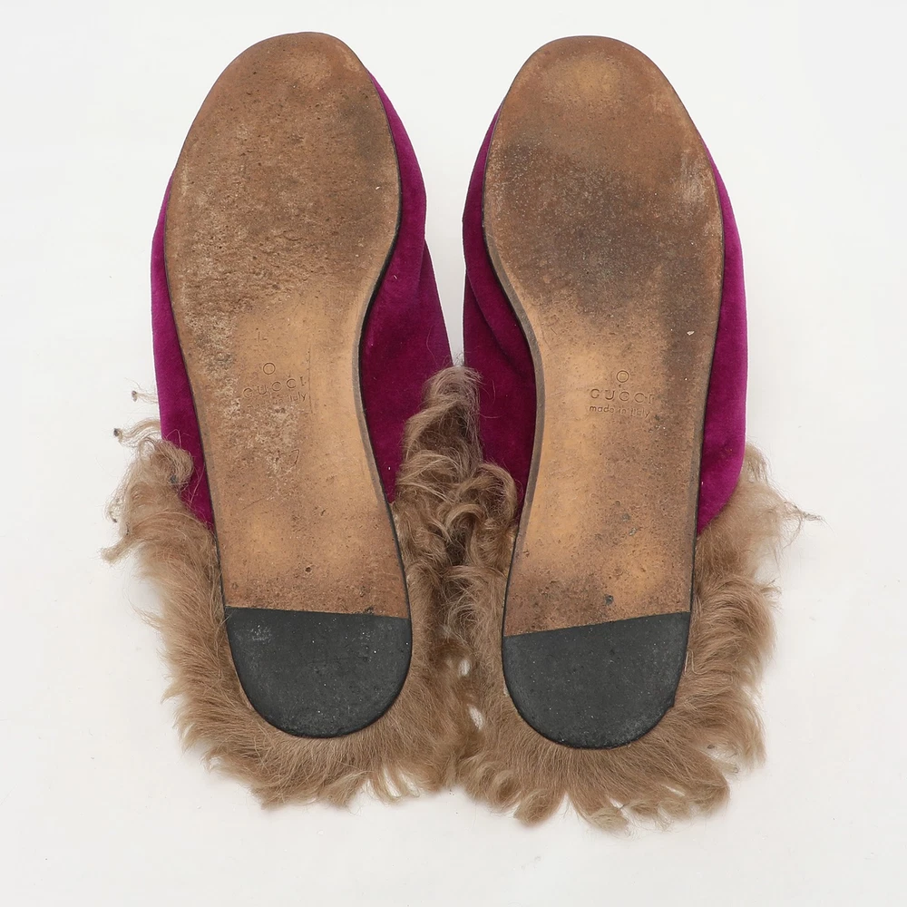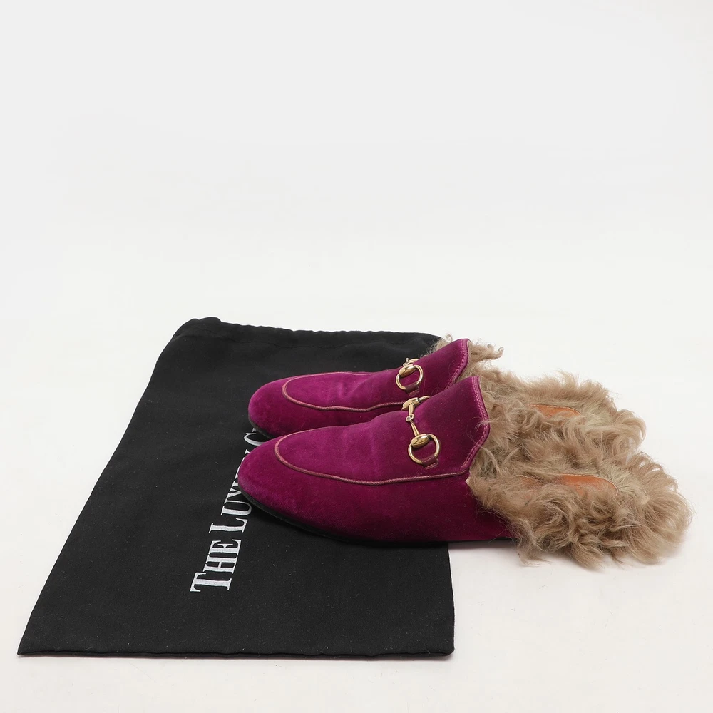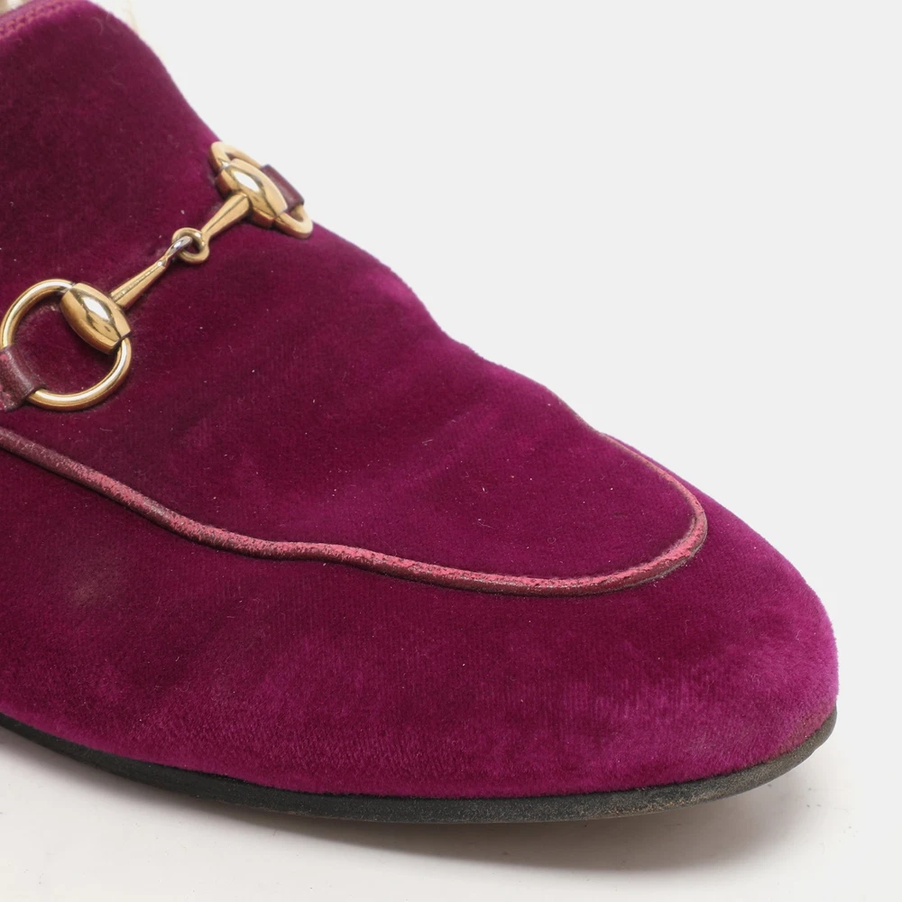 A signature Gucci silhouette, these Princetown mules are reimagined in plush purple velvet. Finished with the iconic Horsebit detail, they offer effortless elegance with a grand touch of color.Certified by The Luxury Closet - This item has gone through a detailed authentication process overseen by our experts. We offer a lifetime guarantee of authenticity on all our items. Import duties, taxes and charges are not included in the item price. These charges are the buyers responsibility. Please check with your country’s customs office to determine what these additional cost will be prior to buying. Our eBay Store About Us Contact Us Add to Favorite Sellers Gucci Purple Velvet Princetown Horsebit Mules Size 37 $236.5 A signature Gucci silhouette, these Princetown mules are reimagined in plush purple velvet. Finished with the iconic Horsebit detail, they offer effortless elegance with a grand touch of color. Product Details Brand Color Purple Dimensions Material Velvet Size 37 Outsole Width 8 cm Outsole Length 25.5 cm Heel Height Includes The Luxury Closet Packaging Certified by The Luxury Closet This item has gone through a detailed authentication process overseen by our experts. We offer a lifetime guarantee of authenticity on all our items. How We Check The in-house team of experts at The Luxury Closet is highly trained to verify the authenticity and the condition of the luxury products. They ensure that only 100% authentic items are put on sale.The evaluation process is unique with its own mix of assessment criteria and differs according to the category. Each item is evaluated based on the following combination of hallmarks, hardware, stitching, symmetry, material, craftsmanship, stamping, codes, hologram stickers, and packaging. Our authenticators also check if the items have been modified or amended (e.g., aftermarket diamonds, replaced batteries, repaired bags, etc.) International Buyers Import duties, taxes and charges are not included in the item price. These charges are the buyers responsibility. Please check with your country’s customs office to determine what these additional cost will be prior to buying.