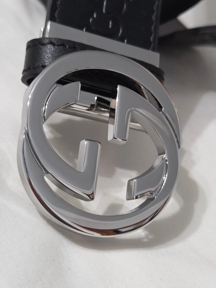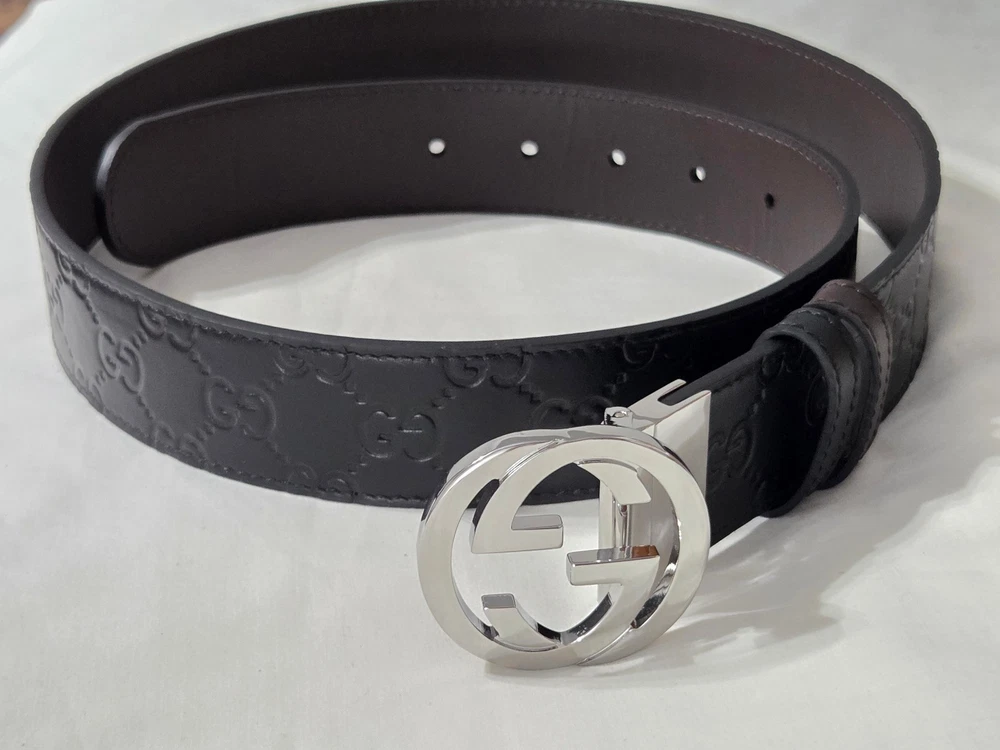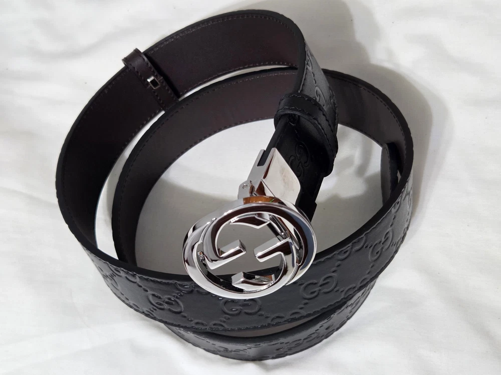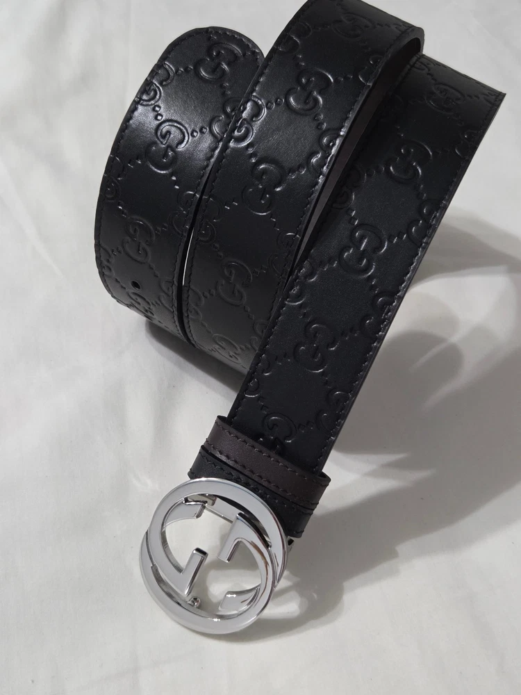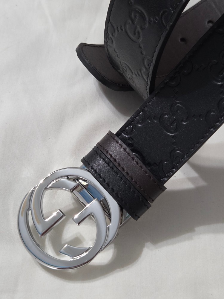 Authentic Gucci 2 in 1 Reversible Black & Brown Leather Belt Silver GG Buckle Size 95cm fits 32-34" Waist - 1.5" Width Belt is New Unworn - Mint Condition as Shown Ships Priority Mail Get it Fast! Beautiful Belt!
