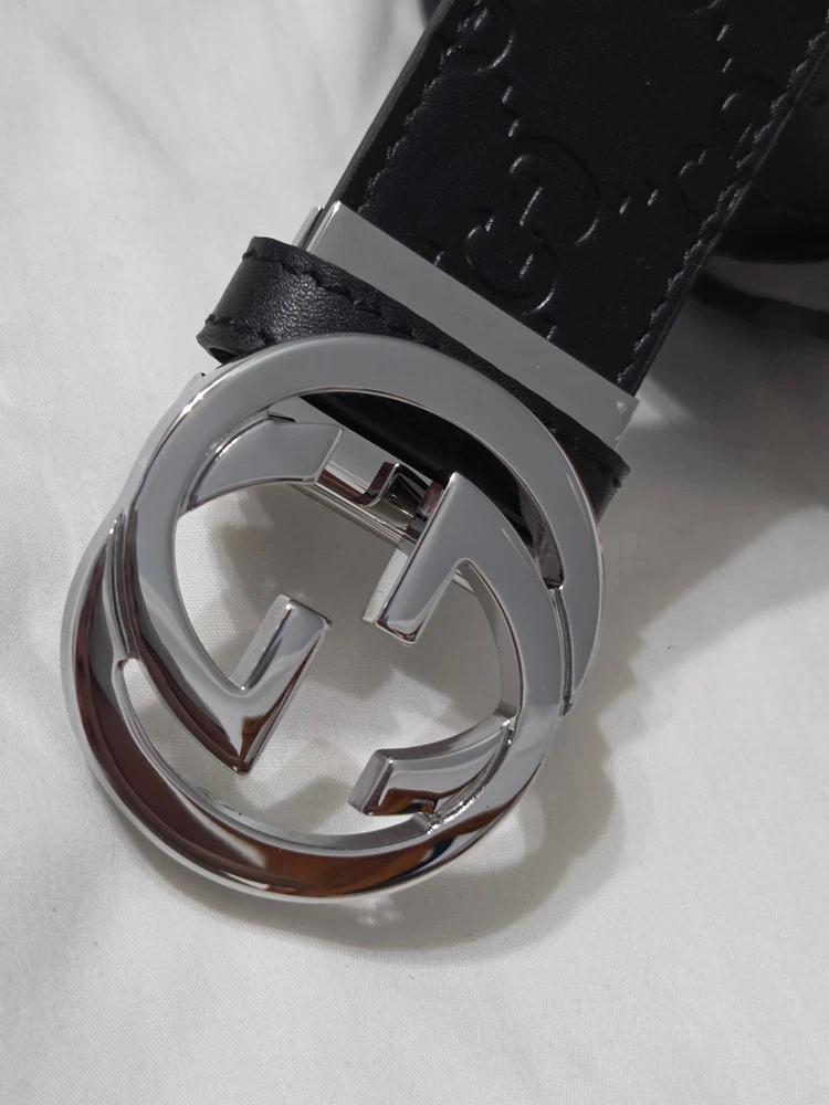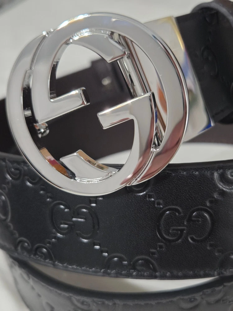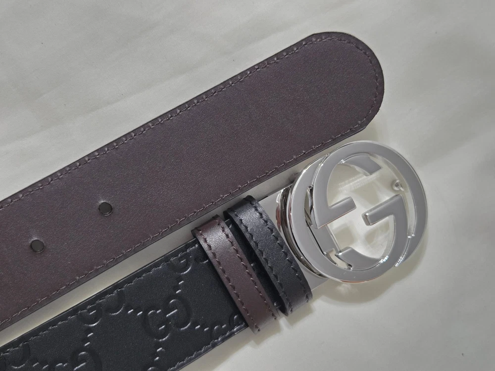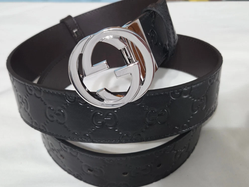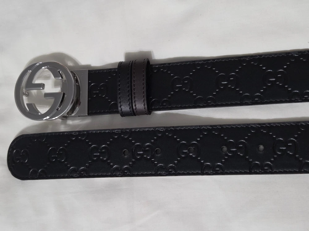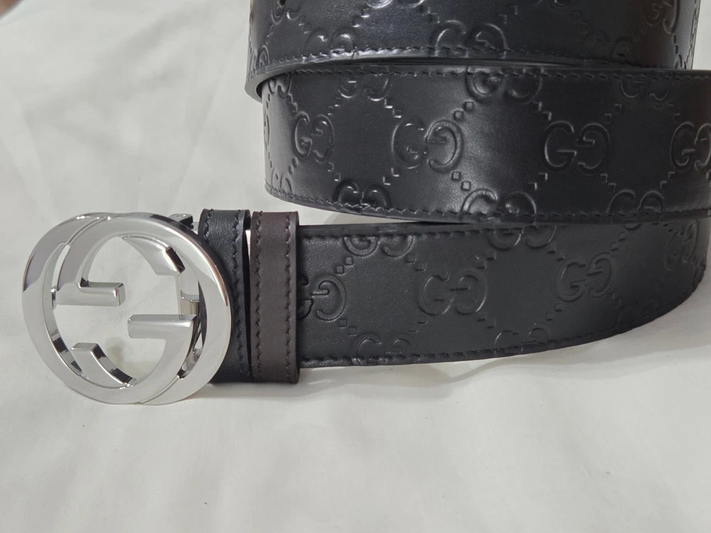 Authentic Gucci 2 in 1 Reversible Black & Brown Leather Belt Silver GG Buckle Size 95cm fits 32-34" Waist - 1.5" Width Belt is New Unworn - Mint Condition as Shown Ships Priority Mail Get it Fast! Beautiful Belt!