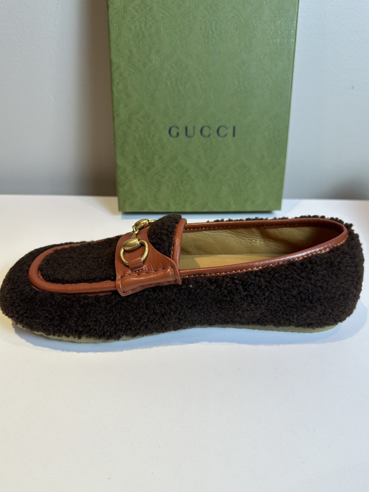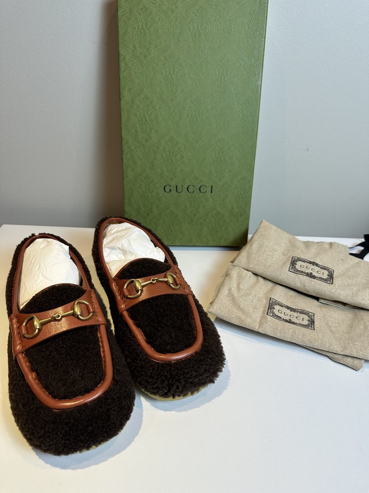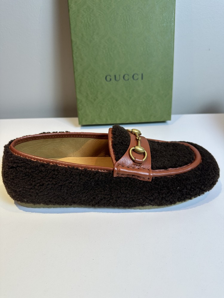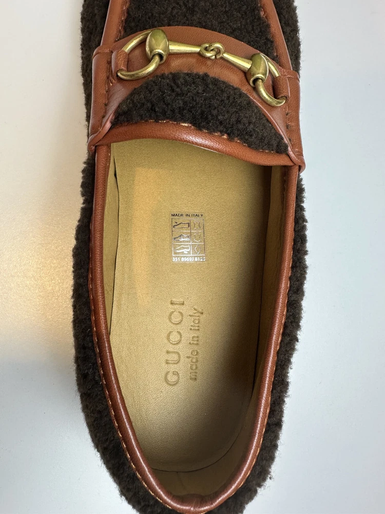 Authentic Gucci Shealing and Leather Brown Loafer New with box and dustbags Size: UK9 US9.5 Made in Italy