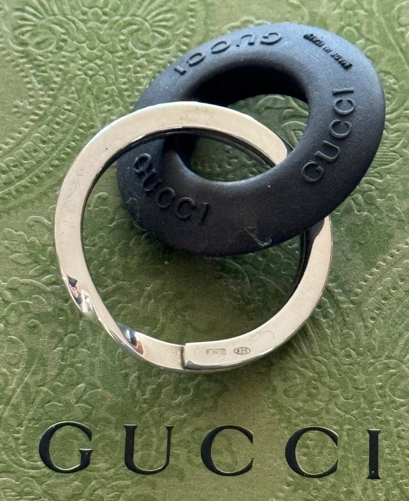 Gucci Keyring. Sterling Silver 925 with Rubber. Made in Italy. No box or pouch. All Our Gucci Items are Authentic.