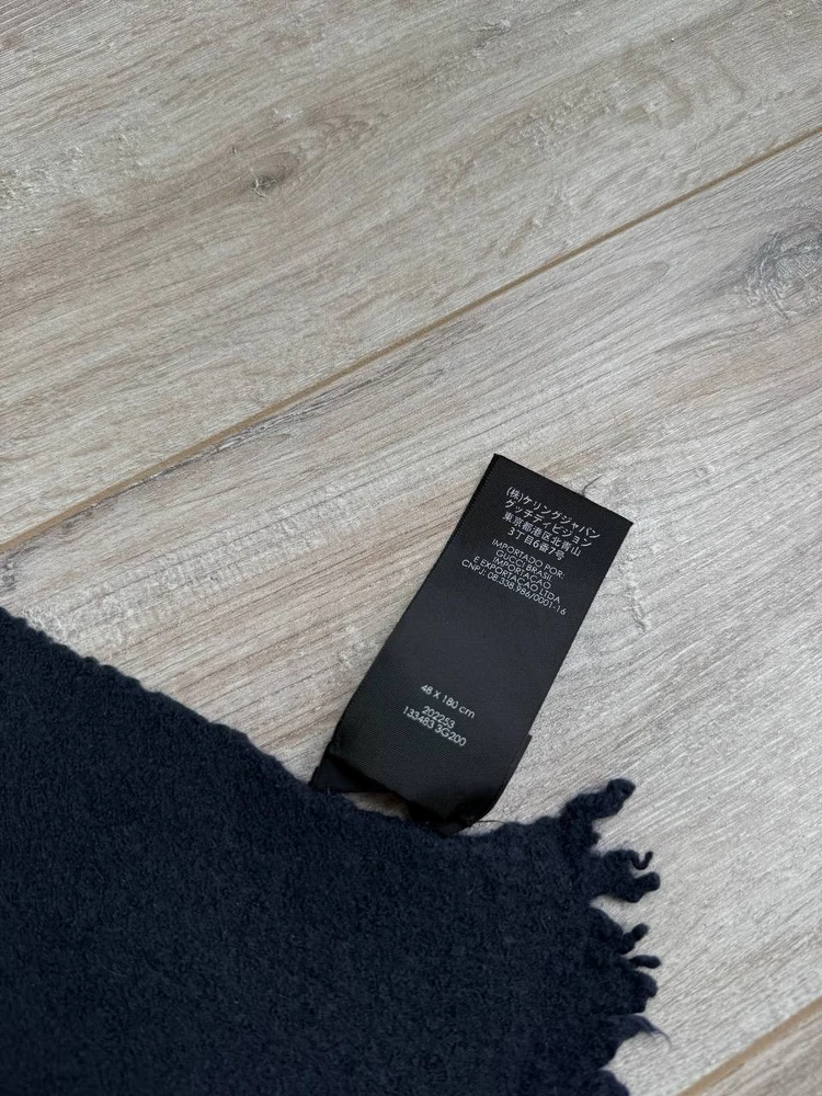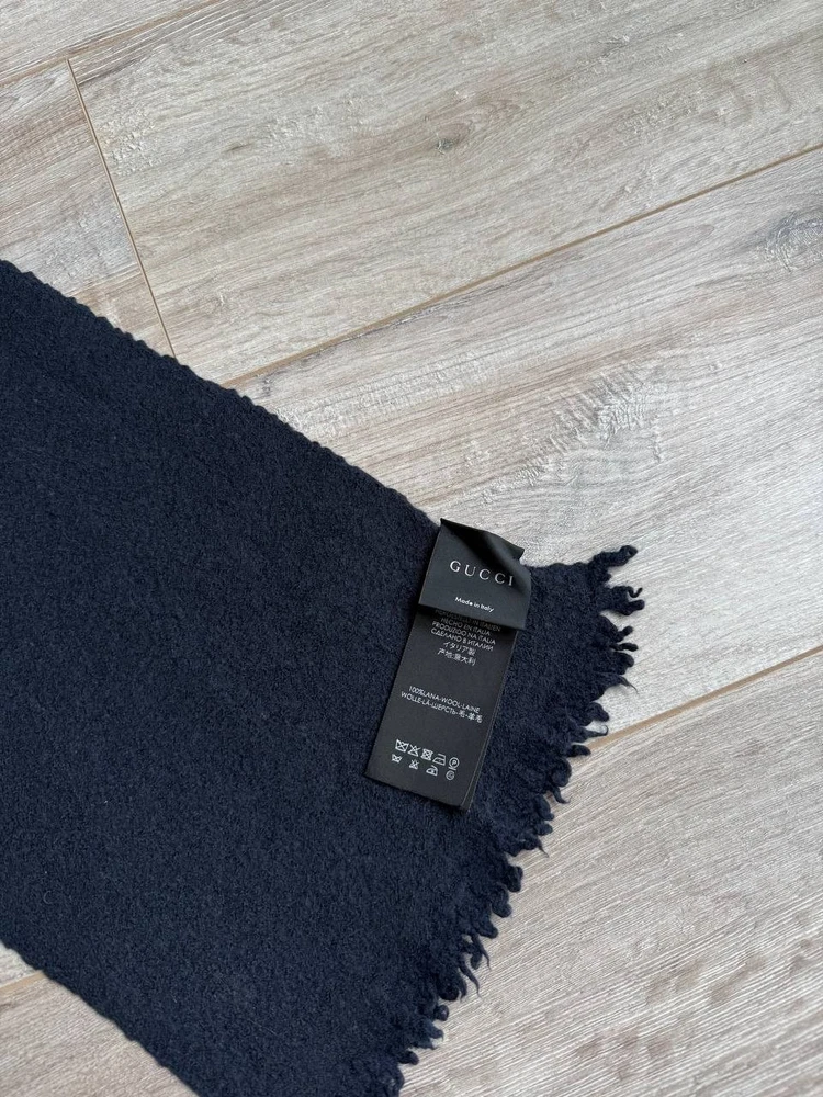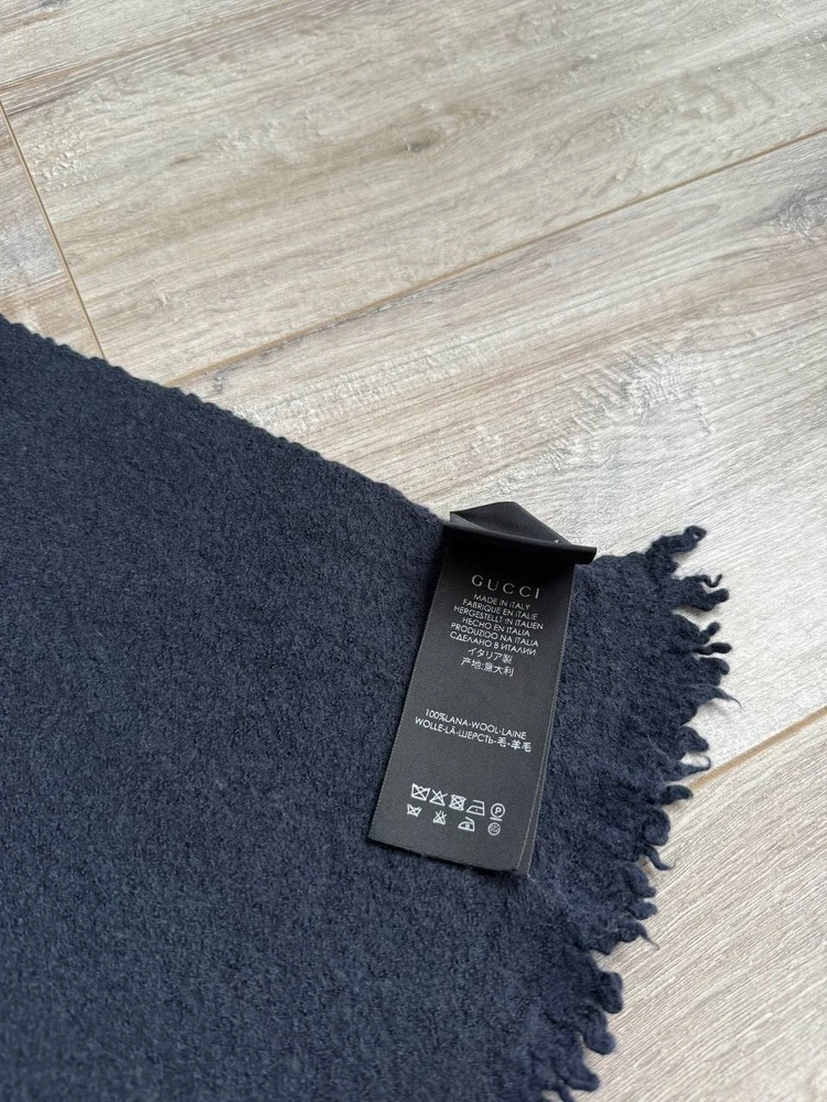 Elevate your winter style with this beautiful Gucci Lana Wool Scarf in Blue. Made with high-quality wool material, this vintage scarf is perfect for any occasion. The scarf features a nature-inspired design, with elements of money, school, Christmas, countries, holiday, college, London, city, and Halloween. This Gucci scarf is a perfect accessory for both men and women. It is a unisex piece that can be styled with any outfit. The scarf is perfect for keeping you warm and stylish during the colder months. Get your hands on this luxurious scarf and add a touch of elegance to your winter wardrobe.