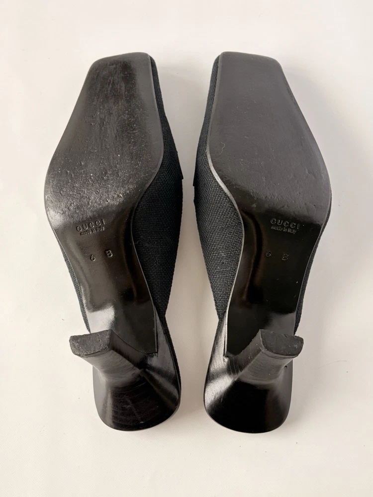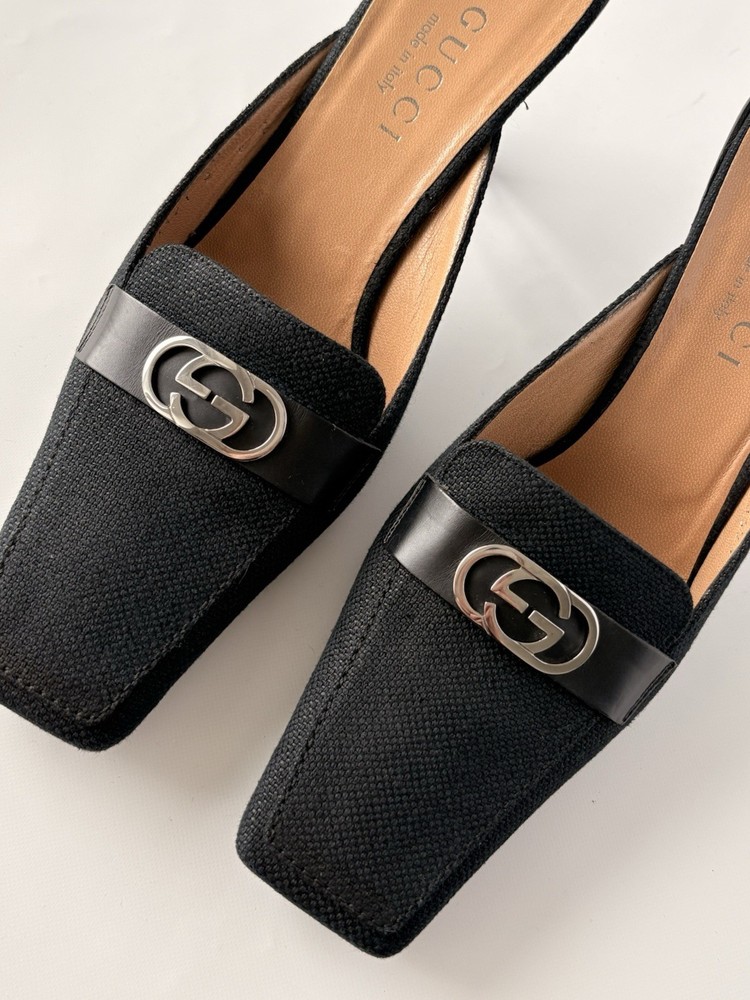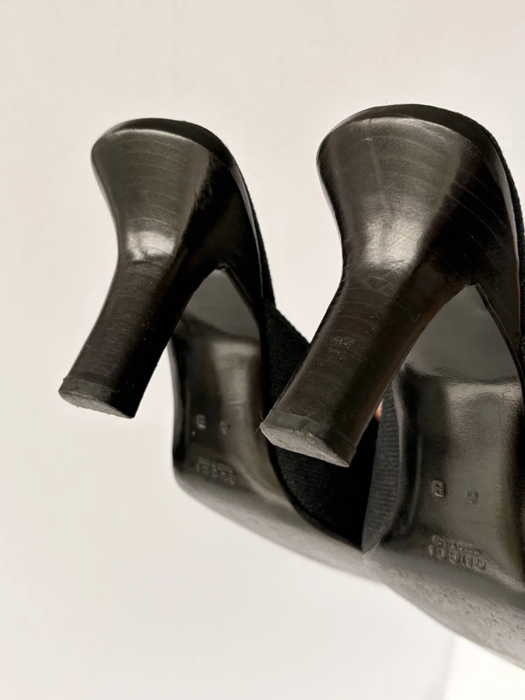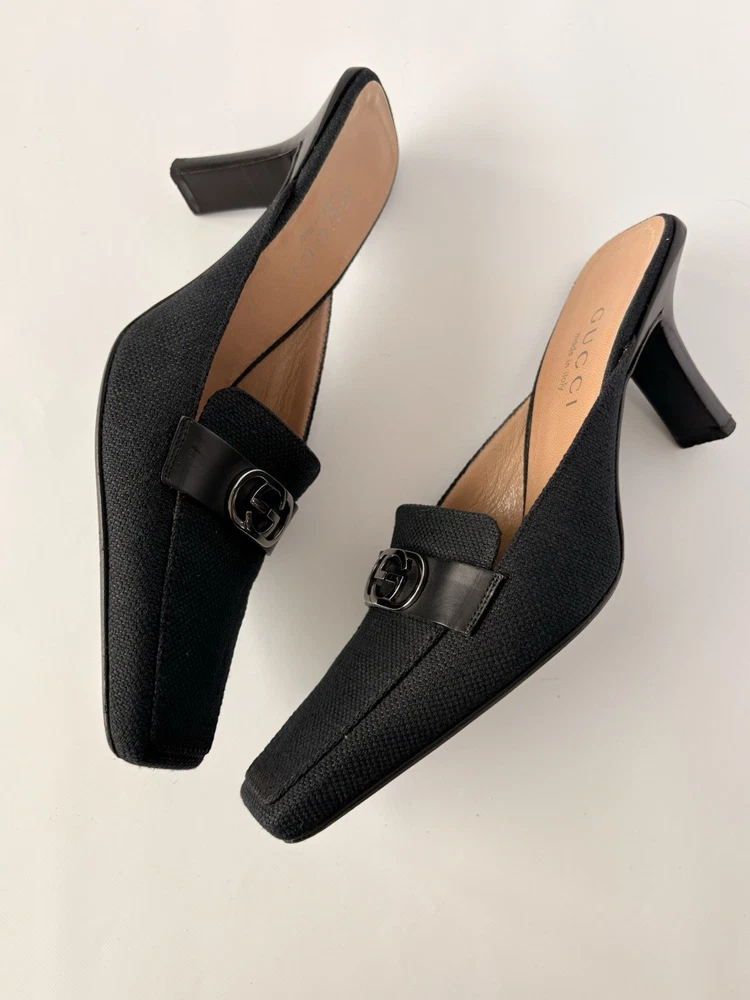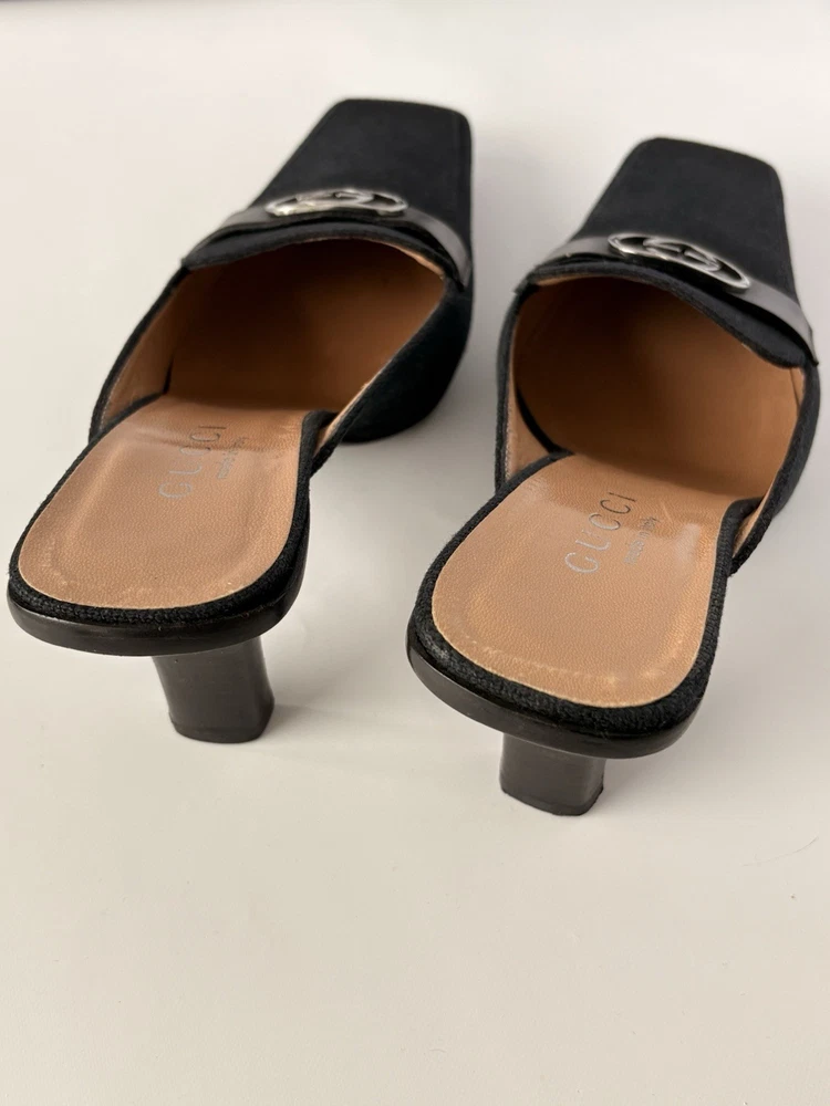Gucci womens mules. Size 6B EU 37. Textile and leather. Heel height 8 cm / 3,15 in. Made in Italy. Condition: very good. Open to your offers Check description and photos very attentively Add your phone number to the shipping info Worldwide delivery 7-25 days. No retuns. If your need any other information about postcage, measurements, photos etc. please contact me. I will be glad to help You!