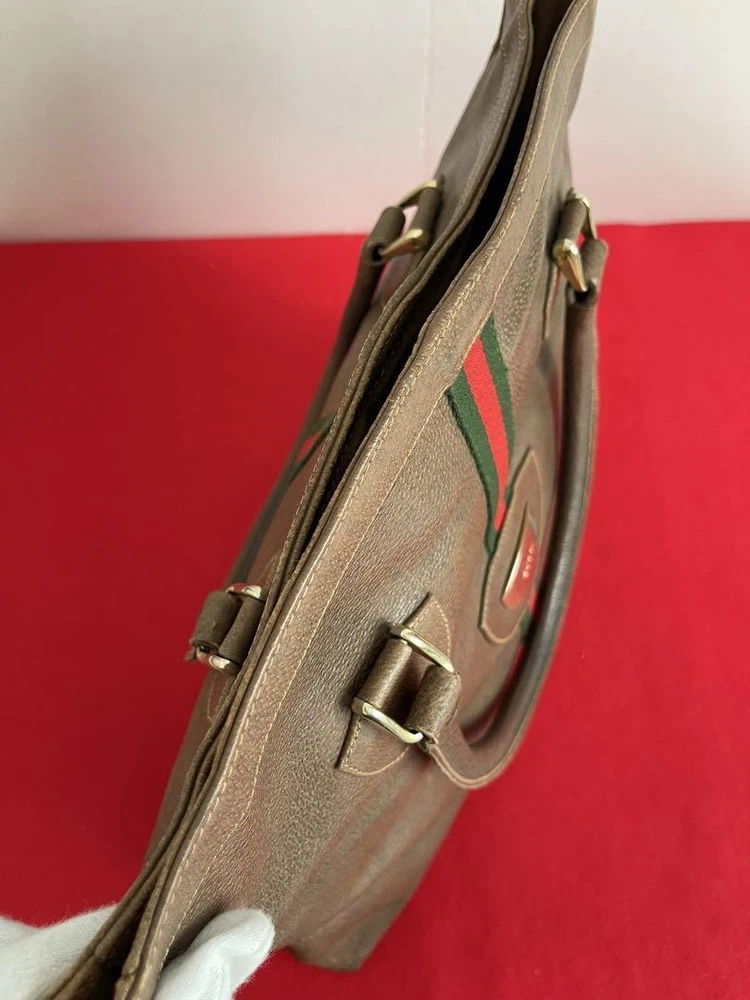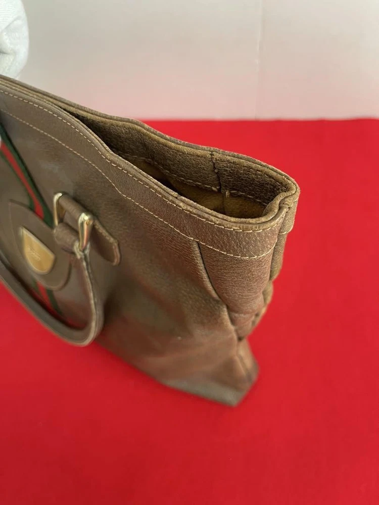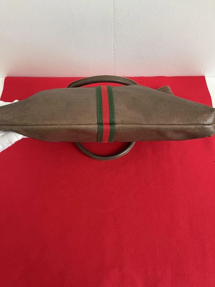 Gucci Vintage Sherry Line Leather Tote Bag Double handle Brown large size Women Description It's a Gucci tote bag Size: Approx. 36cm height x 40cm width x 5cm depth Handle length: approx. 51cm There are small scratches and slight stains on the leather part. There are some small scratches on the metal parts. There is some powder on the inside of the bag. Shipping Shipping from Japan with Tracking Number & Insurance. We usually ship out your order within 10working days after receiving your payment. Payment Please follow the payment method displayed on your ebay. International Buyers - Please Note: Import duties, taxes, and charges are not included in the item price or shipping cost. These charges are the buyer's responsibility. Please check with your country's customs office to determine what these additional costs will be prior to bidding or buying.
