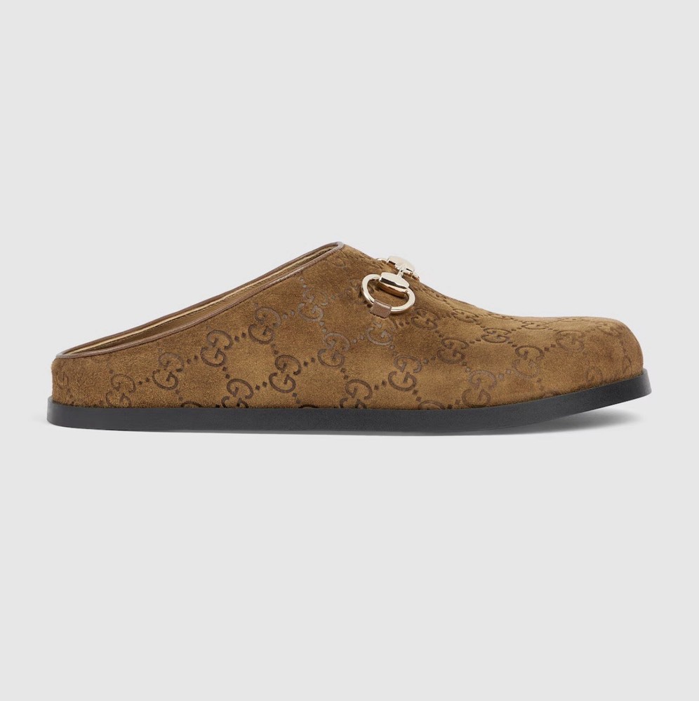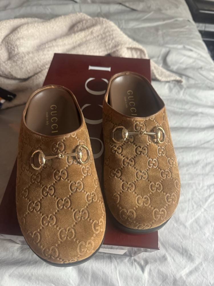 Gucci Women's Brown GG Monogram Horsebit Suede Flats Mule EU 38.5
