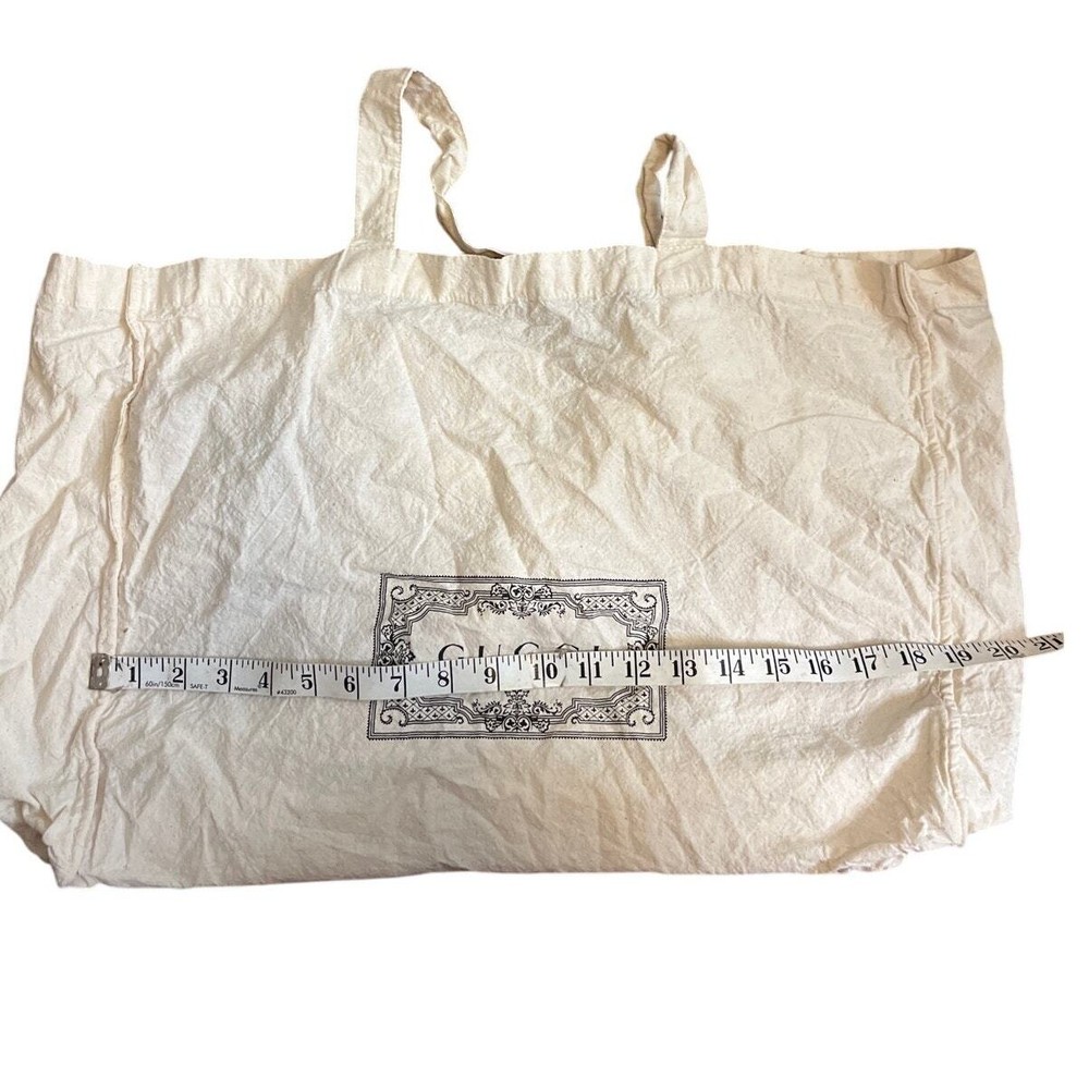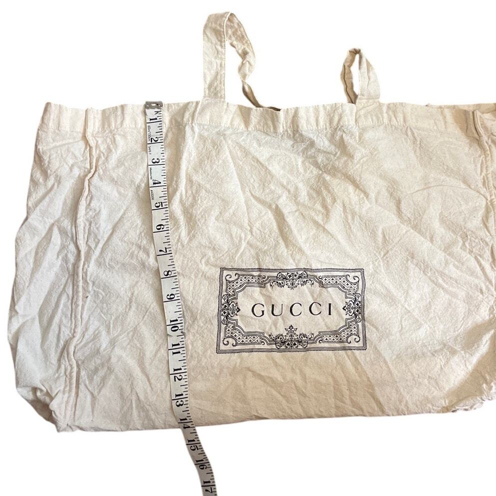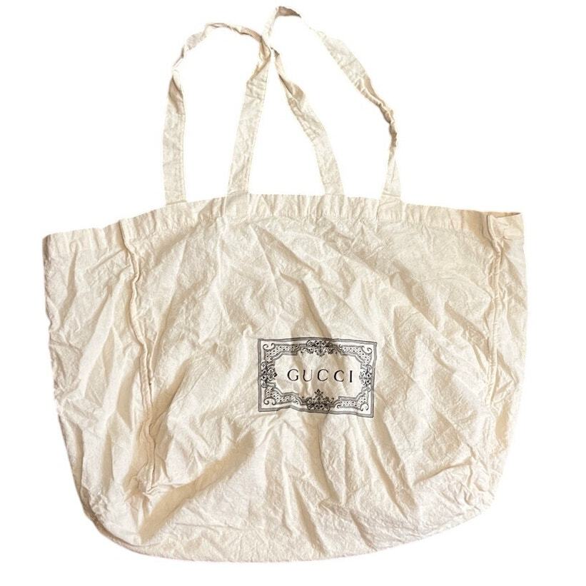 This Gucci large cotton shopping tote is a versatile accessory for any occasion. With a cream exterior color and beige lining color, it is perfect for travel, casual wear, and workwear. The tote features a rectangular shape and a shoulder strap handle style, making it easy to carry and convenient for on-the-go use. The bag width measures 19 inches, while the bag height measures 14 inches, providing ample space for all your shopping needs. The tote is also lightweight and packable, making it an ideal choice for college, city life, and beach vacations. The exterior material is cotton, and the bag is adorned with the iconic Gucci logo pattern. This tote is perfect for anyone who loves Italian fashion and wants to add a touch of luxury to their wardrobe.