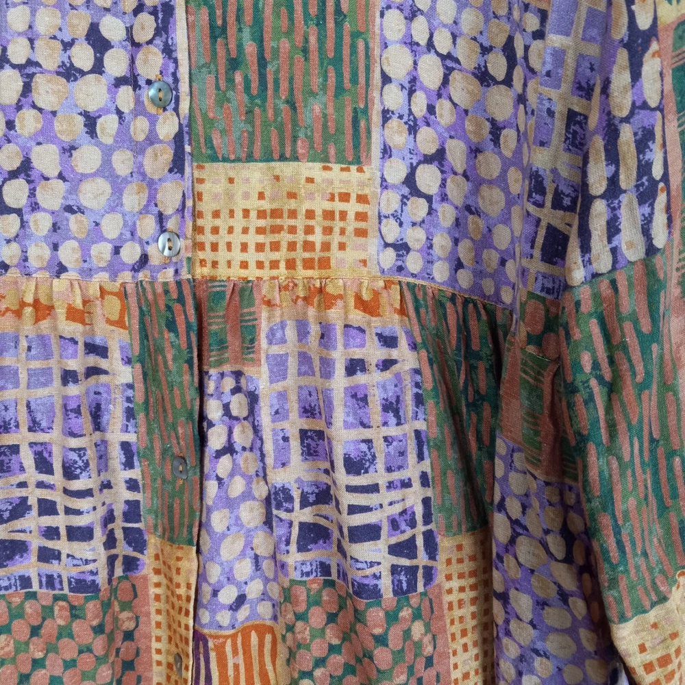 Elevate your wardrobe with the Gudrun Sjoden Patchwork Midi Dress, a true blend of comfort and style. Crafted from a luxurious linen-modal mix, this dress promises a relaxed fit for regular size M, featuring an oversized silhouette that exudes a Bohemian charm. Its versatile mid-length cut falls between the knee and ankle, making it perfect for a variety of occasions. The dress showcases an eclectic patchwork pattern with alabaster buttons that add a touch of artisanal flair. Designed to cater to the modern woman, it comes equipped with convenient pockets and is machine washable for easy upkeep. Whether you're aiming for a casual look or dressing up for an art event, this Lagenlook-inspired piece will seamlessly fit the bill. see pics for details and measurements