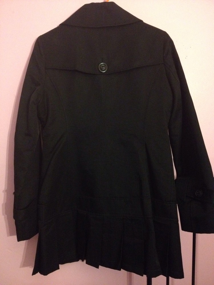 Size Type: Regular Color: Black Outer Shell Material: Cotton Blend Brand: GUESS Department: Women Size: M Accents: Pleated Style: Trench Type: Coat