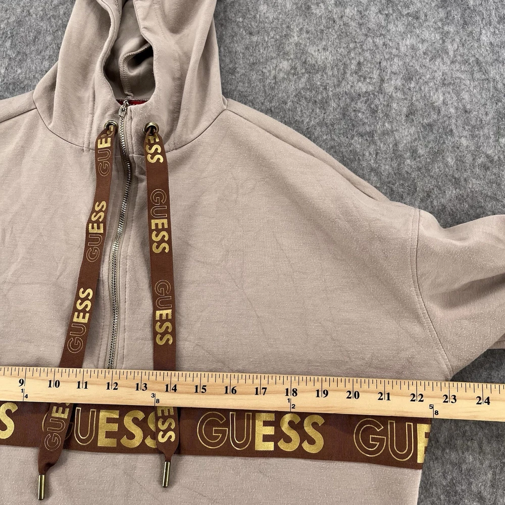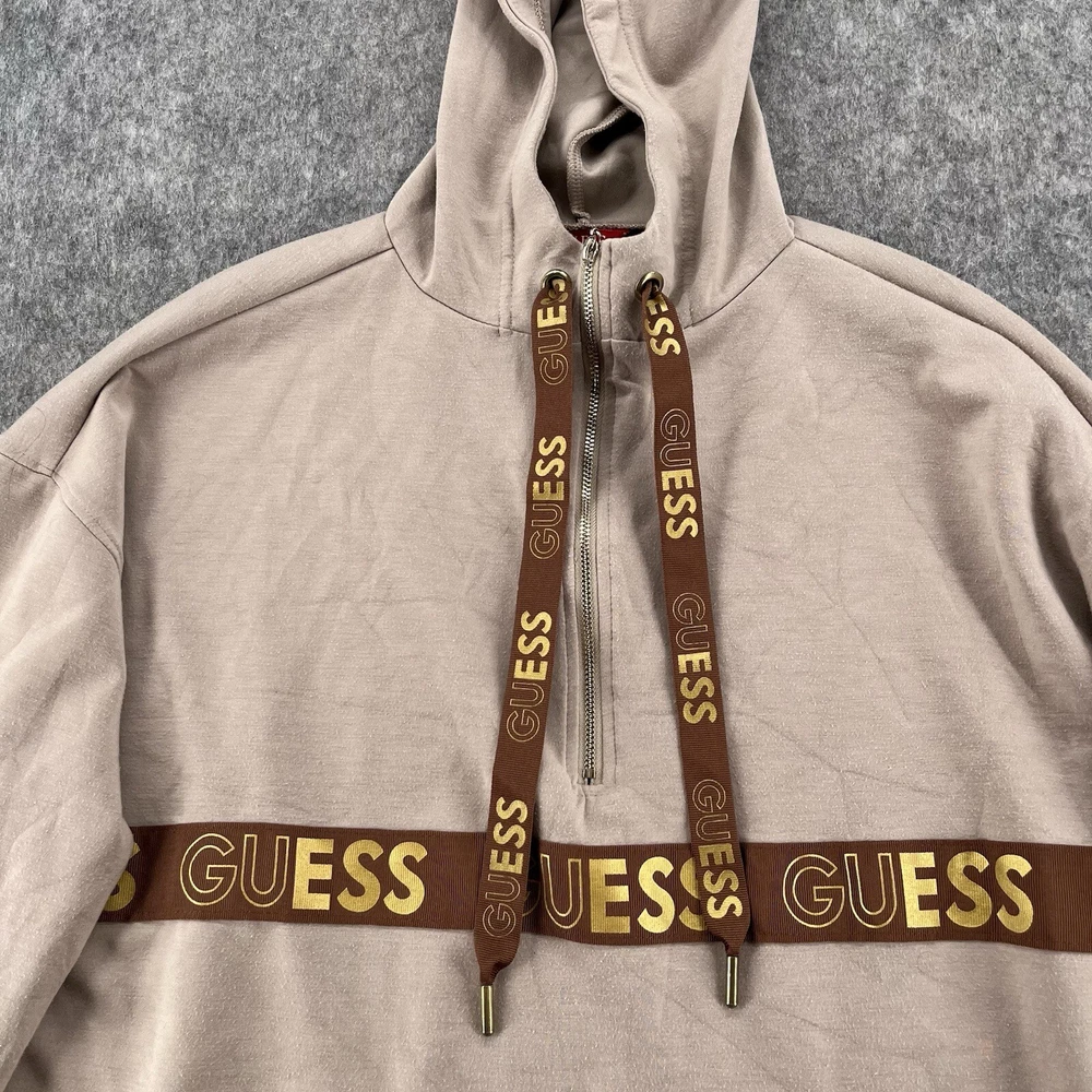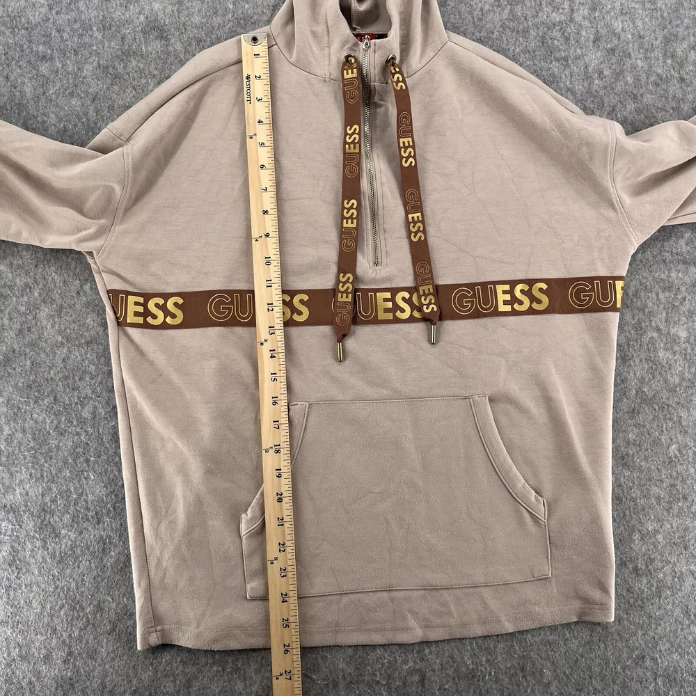 Size Type: Regular Accents: Logo Size: XS Brand: GUESS Color: Beige Features: Oversized Style: Tunic Department: Women Type: Hoodie Occasion: Activewear