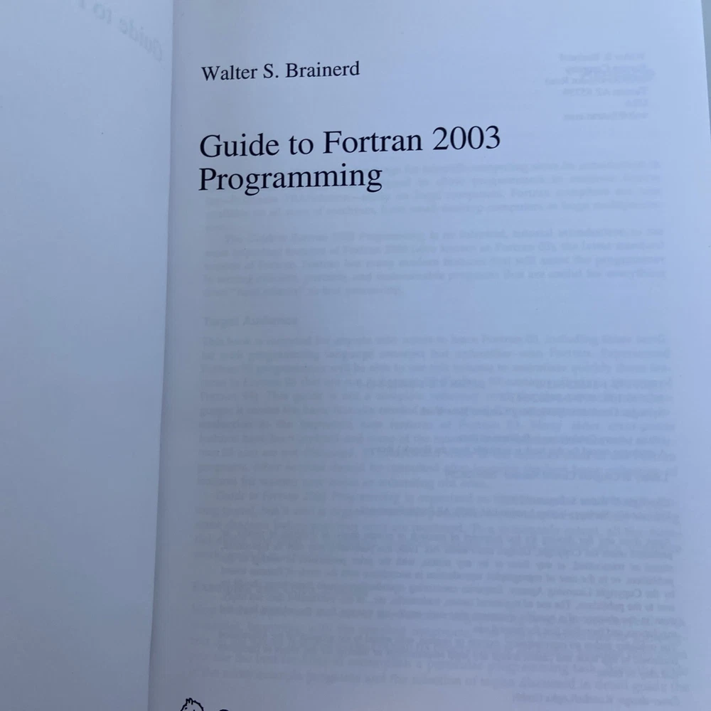 The product is a "Guide to Fortran 2003 Programming" textbook written by Walter S. Brainerd. Published by Springer in 2009, it is a hardcover book in English, measuring 9.3 inches in length and 6.1 inches in width. The book has X, 357 pages and weighs 54 ounces. It covers topics in Computers, Programming Languages, and Algorithms.
