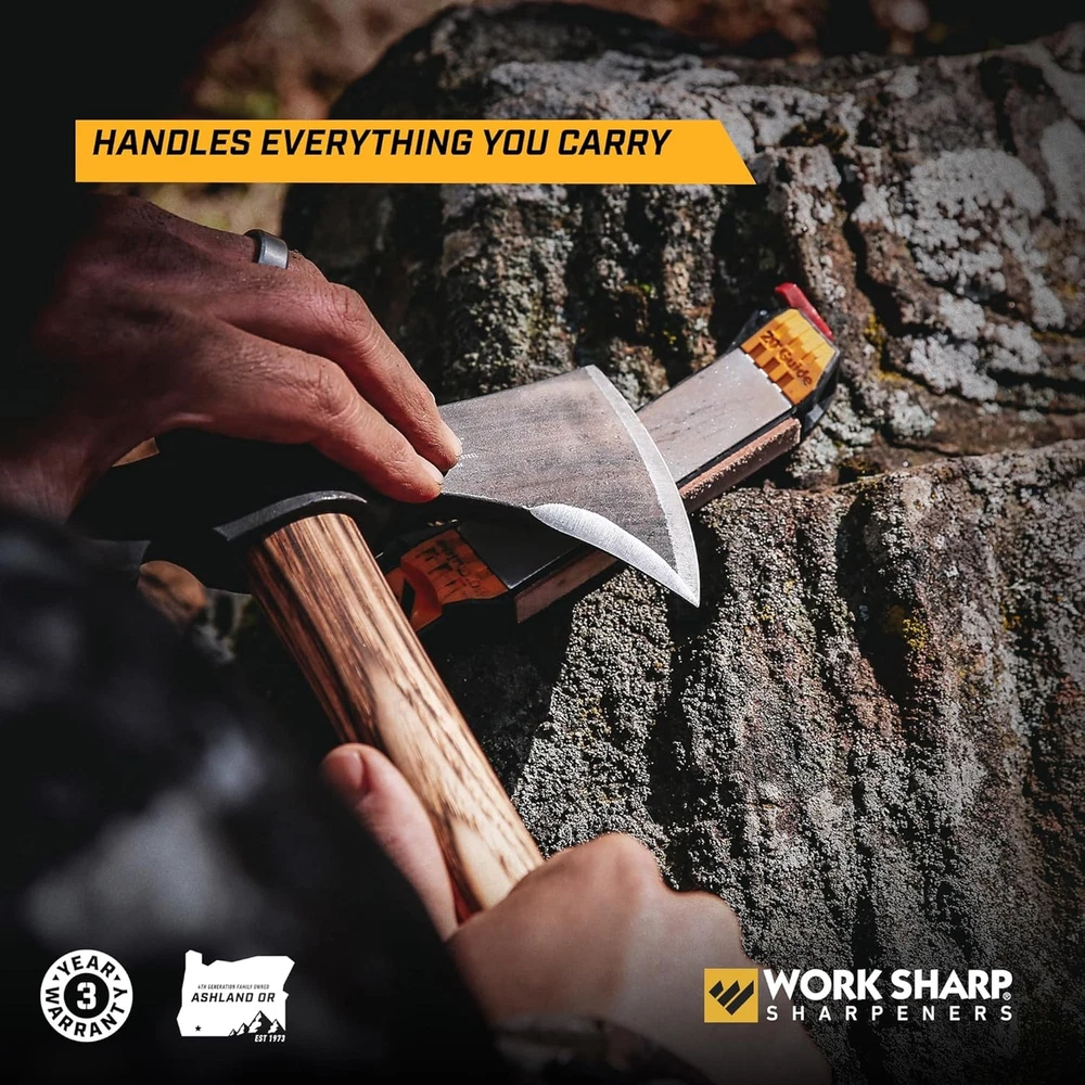 Product Description The Guided Field Sharpener is a complete sharpening solution for field, home or shop use. The Elite version comes with a travel case that fits the sharpener perfectly. The travel case is durable polyester with a sturdy Nylon zipper. It is the first angle guided, 5 stage sharpening solution designed for sportsmen who need a complete, robust and compact field sharpening solution. This portable knife sharpener is small enough to travel and large enough to sharpen axes, field dressing knives, fillet knives, fish hooks and pocket knives. This portable knife sharpener is a hunting bag necessity whether hunting, camping, fishing or just into compact survival tools it will be your go to tool sharpener.