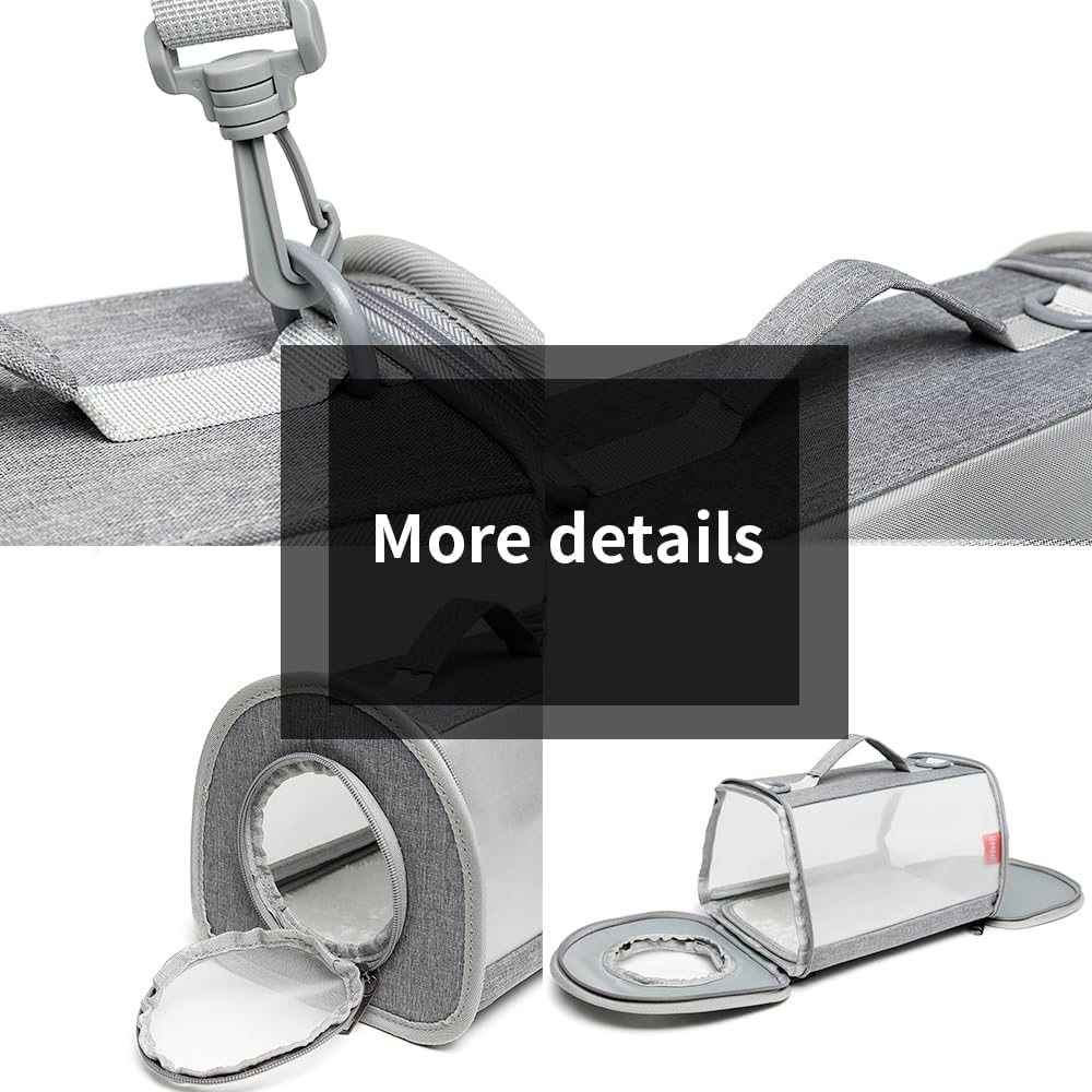【Large Size But Foldable】Large Expand Size: 5.9*7*5.9 inch. Large capacity is big enough for hedgehog, hamster, squirrel, parrot, rat and squirrel etc small animals. The small pet carrier can be folded for easy carrying out and indoor storage with the the Foldable Size: 1.6*10.6*7.9 inch. 【Transparent Breathable Mesh Design】2 transparent mesh windows on the hamster carrier and 1 side opening mesh door are designed to ensure fresh air and air circulation for your furry child and they can enjoy the scenery. There is a side pocket which is very convenient for you to foldable bowls, toys and store food. 【Material】The material is PET breathable gauze +Oxford cloth. It is normal for aggressive rabbit and hamster to chew and bite anything so please put some hamster teething toys or food in the carrier before going out. 【Portable and Safety Designer 】This small animal carrier is easy to carry and store, The hamster bag has a hand strap and an adjustable shoulder strap, so you can choose a more comfortable way of carrying. It’s very good option for travel to vet, short trip to vet. 【Easy To Carrier】This small animals carring bag has one removable support mat which can be washed by hand or machine, easy to clean. The small animal carry bag is light, easy to fold, and carry. Product Description Product Description Suitable for pet display More details side opening mesh door Side opening mesh door,easy access for pets pocket Convenient to place foldable bowls, toys and store food. Wear-resistant buckle Strong bearing capacity Zipper folding Can be folded and placed at any time