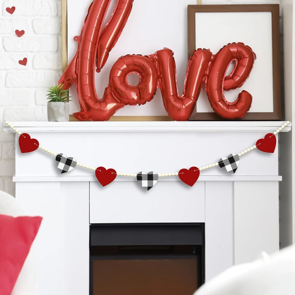 Valentines Day Decor - This Valentines day garland designed with red heart and black&white buffalo plaid heart, very fitting for valentine's day theme. Quality Material - The heart banner with clear printings and bright colors, made of quality wooden material, thick and sturdy, can be used for a long time. Proper Size - The total length of garland is 4.67ft, suitable for fireplace, window, wall and so on. Great Gift Idea - These lovely and delicate wooden decorations are great home decorations for Valentines day and also good holiday gifts for family, friends and colleagues. Decorate Anywhere - A ideal Valentine's Day home decorations for window, wall, door, shelf, fireplace, kitchen and anywhere you like. These beautiful little things will make your home full of holiday atmosphere!