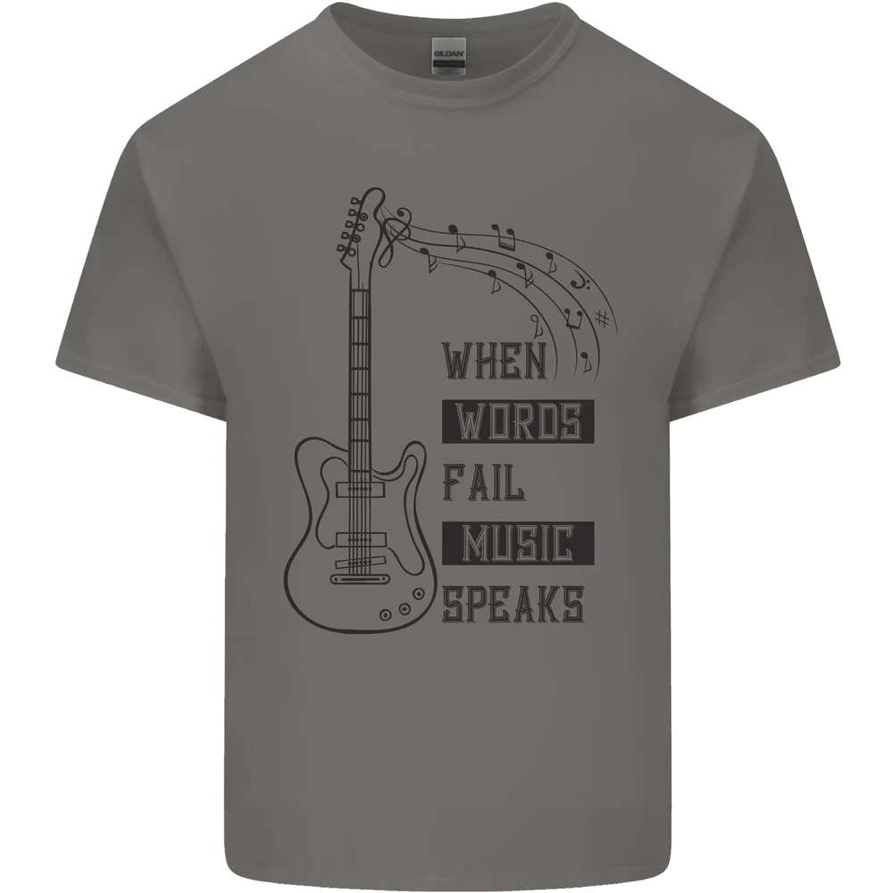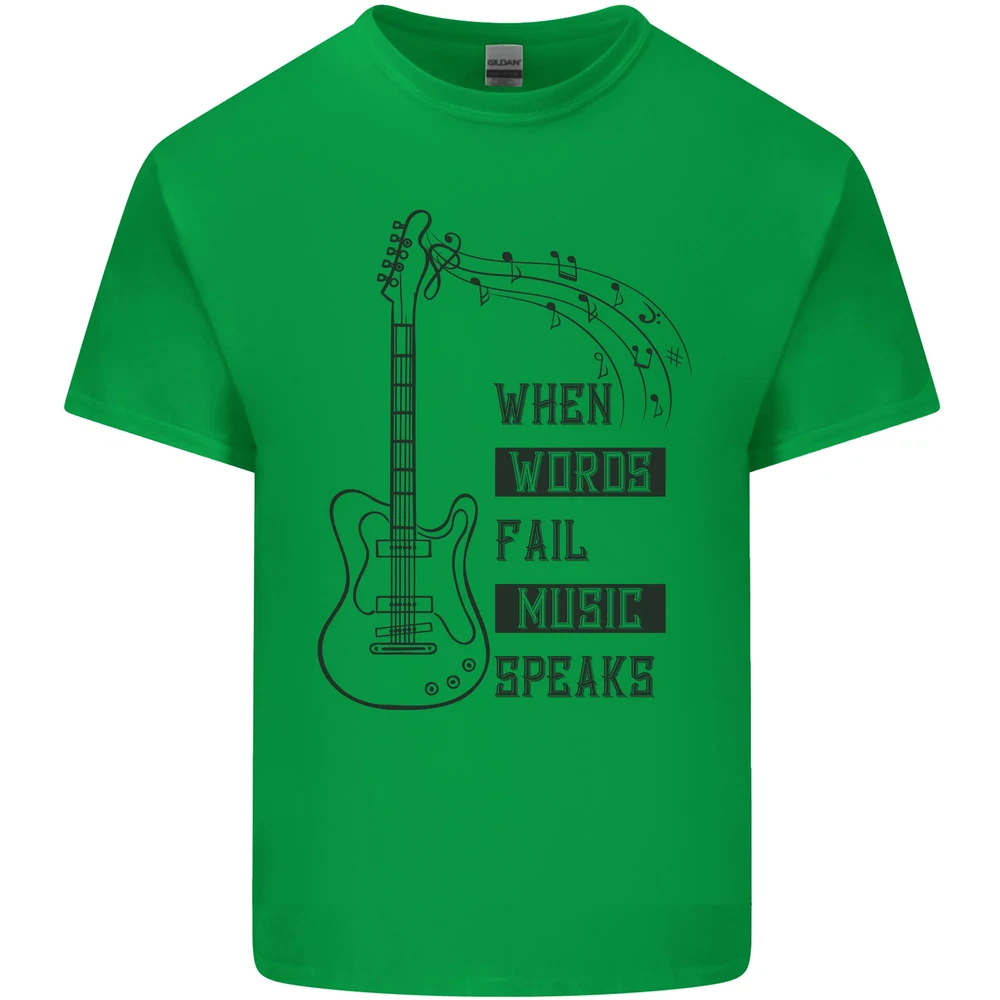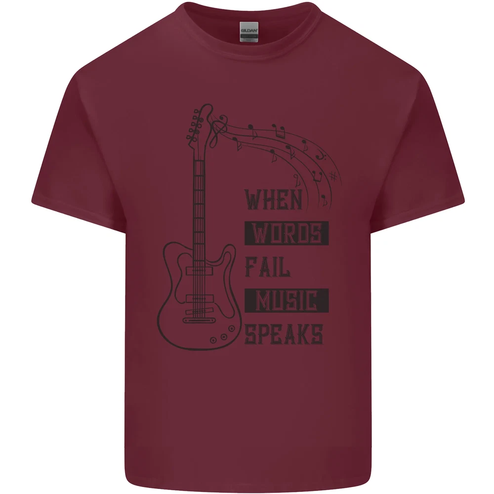 Guitar When Words Fail Music Speaks Mens Cotton T-Shirt Tee Top