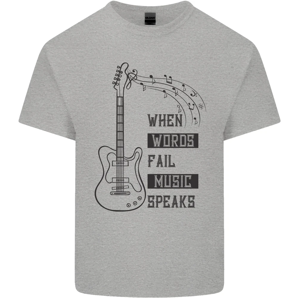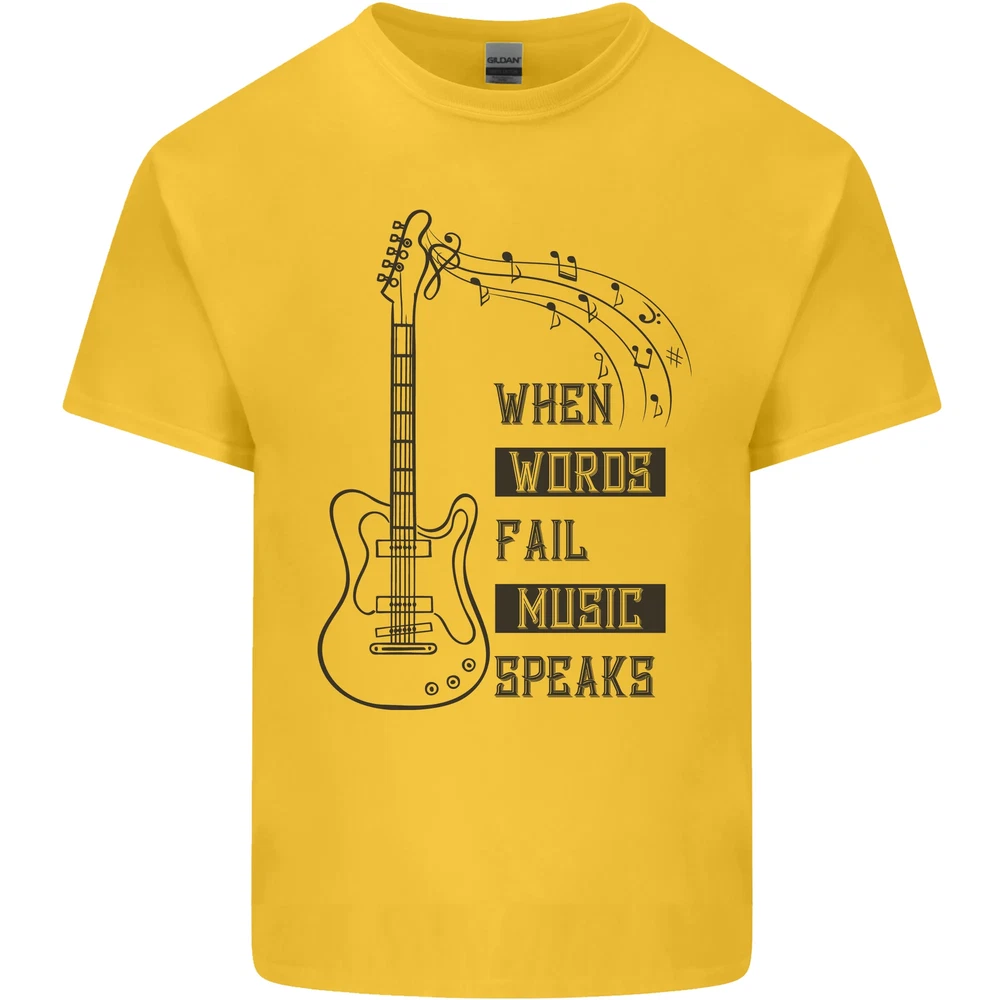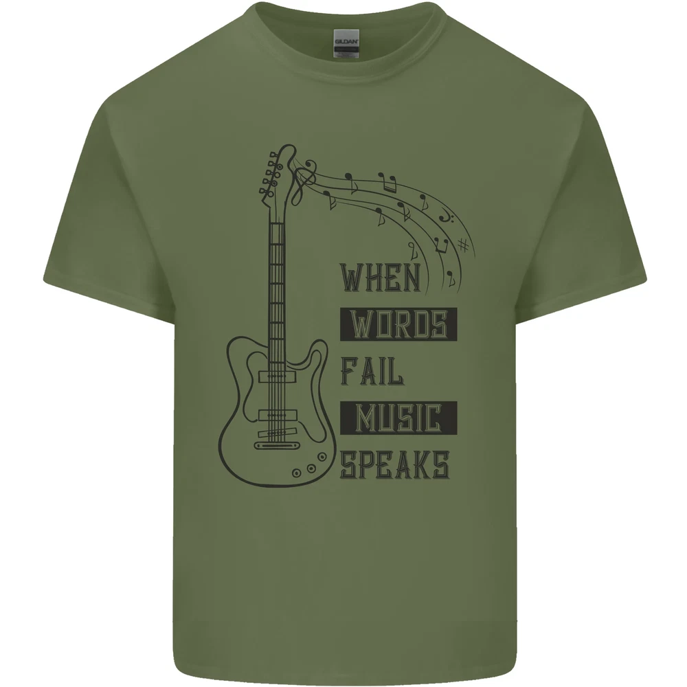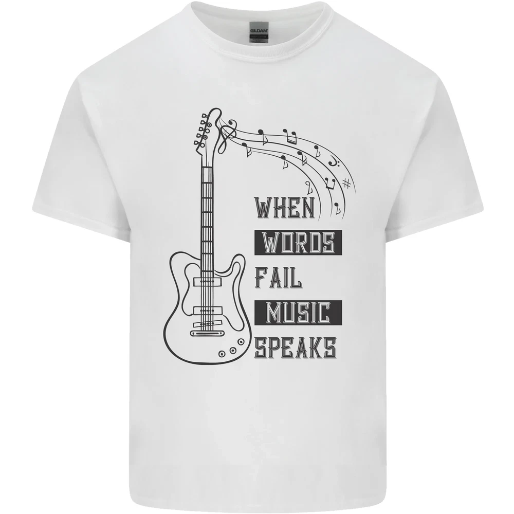 Guitar When Words Fail Music Speaks Mens Cotton T-Shirt Tee Top