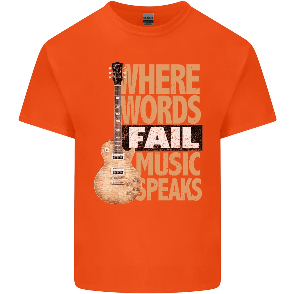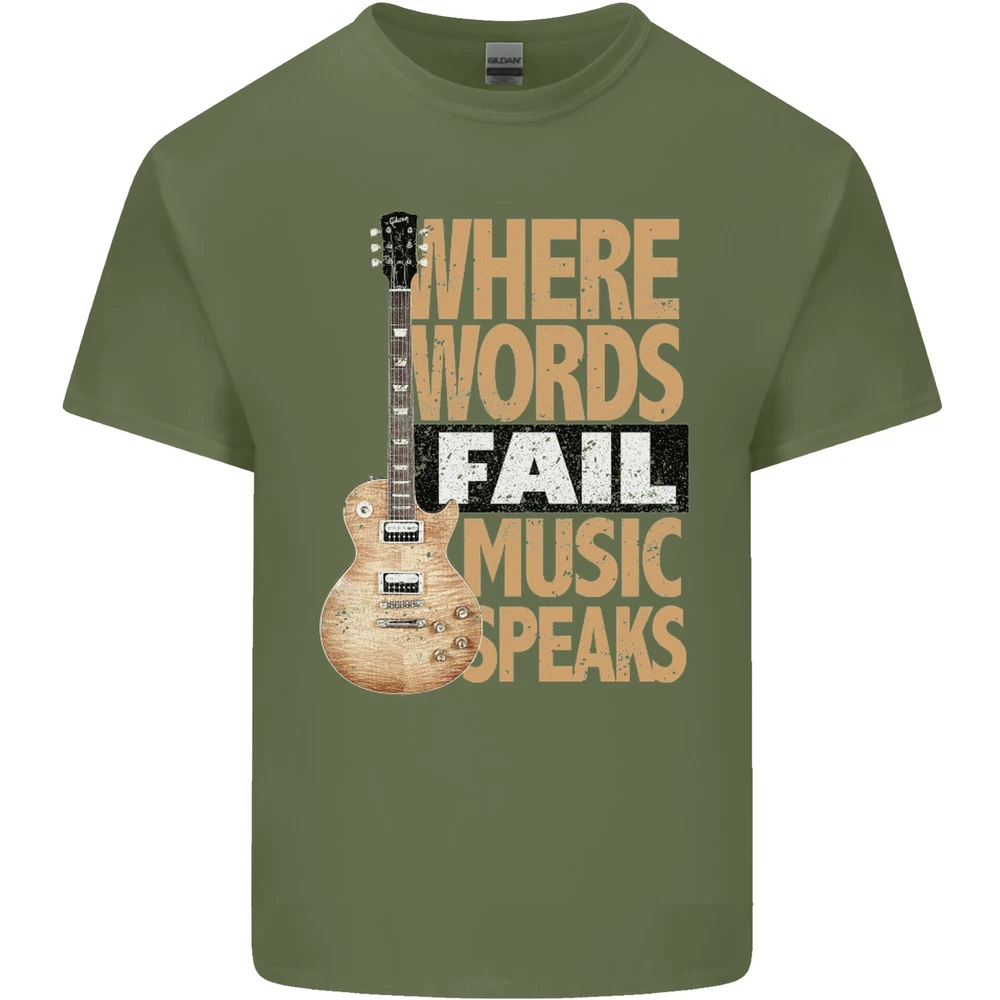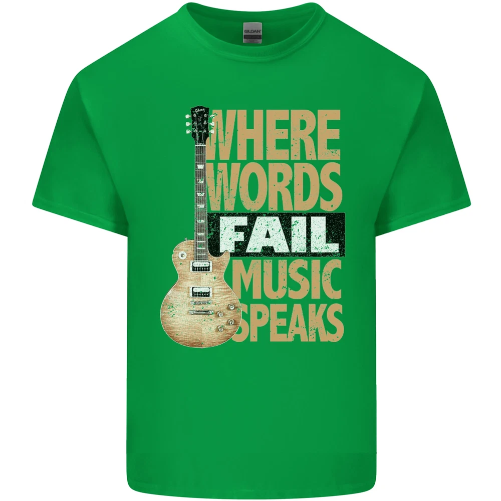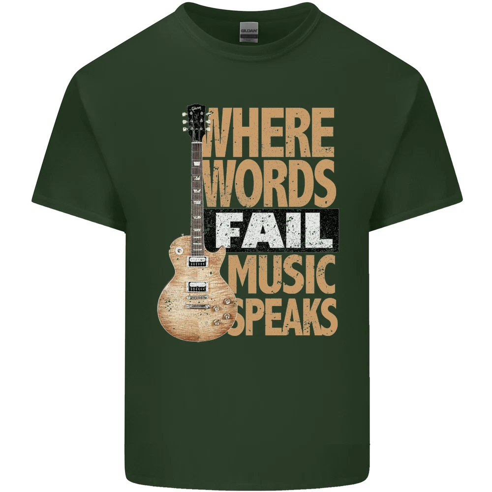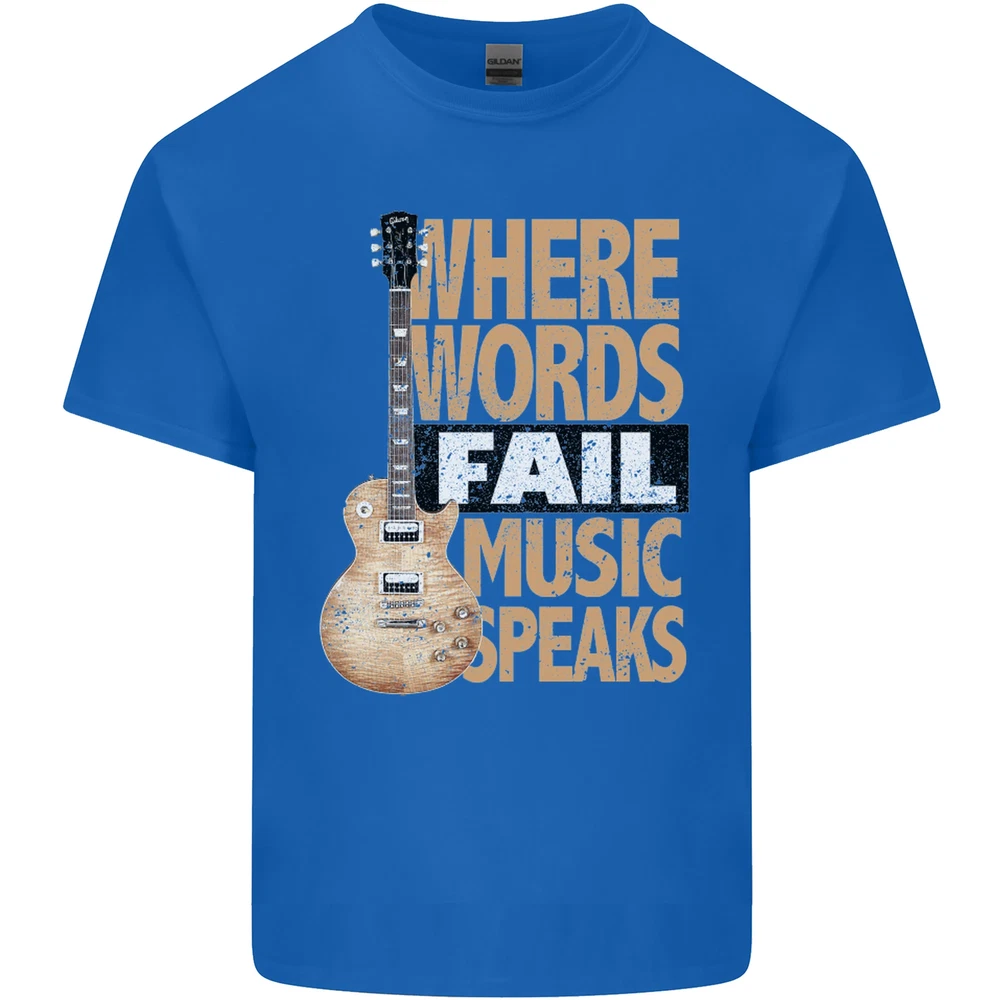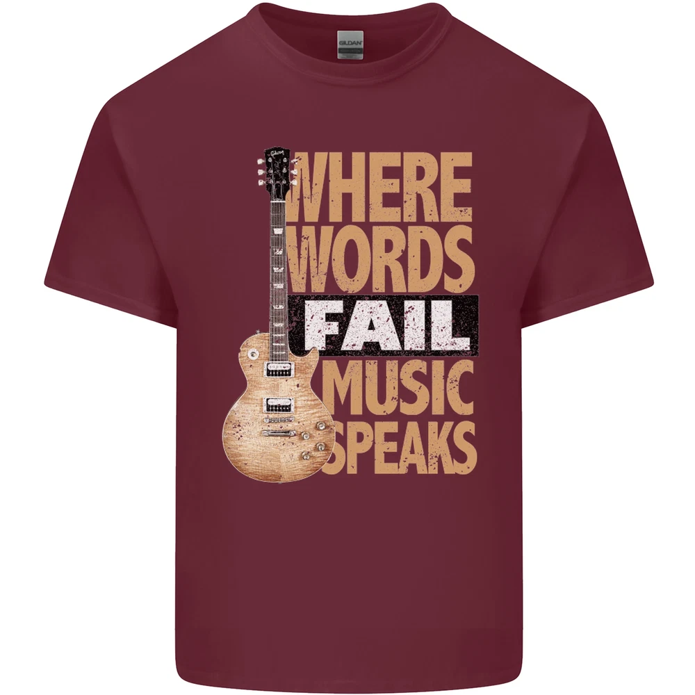 Guitar Words Fail Music Speaks Guitarist Mens Cotton T-Shirt Tee Top