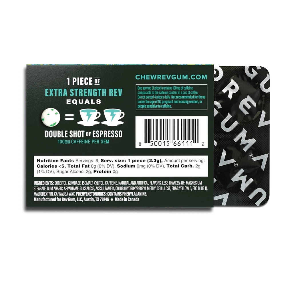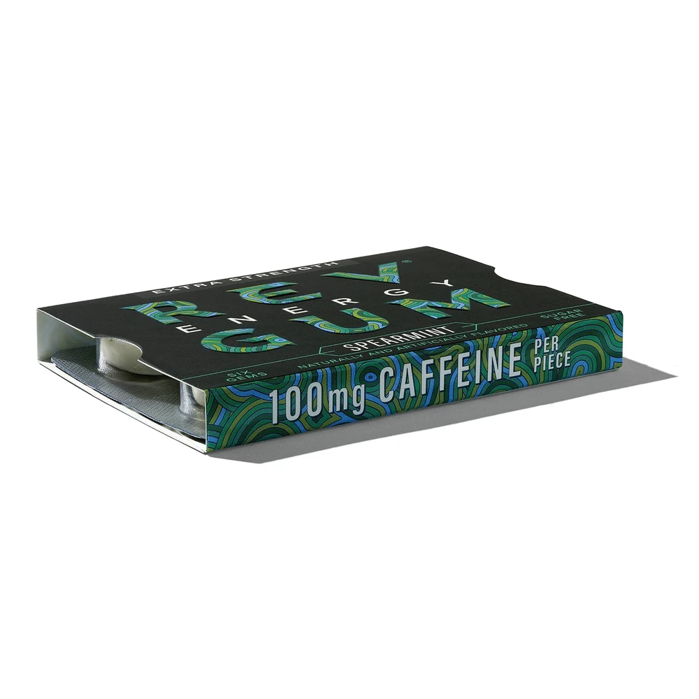 carton contains 12 packs of Energy Gum (72 pieces), each gem packed with 100mg of caffeine for a convenient energy source on the go. EXTRA STRENGTH FORMULA: 100mg of caffeine providing energy equal to a doubleshot of espresso - for maximum energy on the go. DELICIOUS SPEARMINT FLAVOR: Classic spearmint delivering performance like no other gum on earth. QUICKLY INCREASES ENERGY: Get the energy you need quickly, without jitters or sugar crashes. INCREASE FOCUS AND PERFORMANCE: Level up to your best and physical performance at work, school, the gym or on the go. COMPACT CONVENIENT PACKAGING: Always have the energy you need right when you need it.