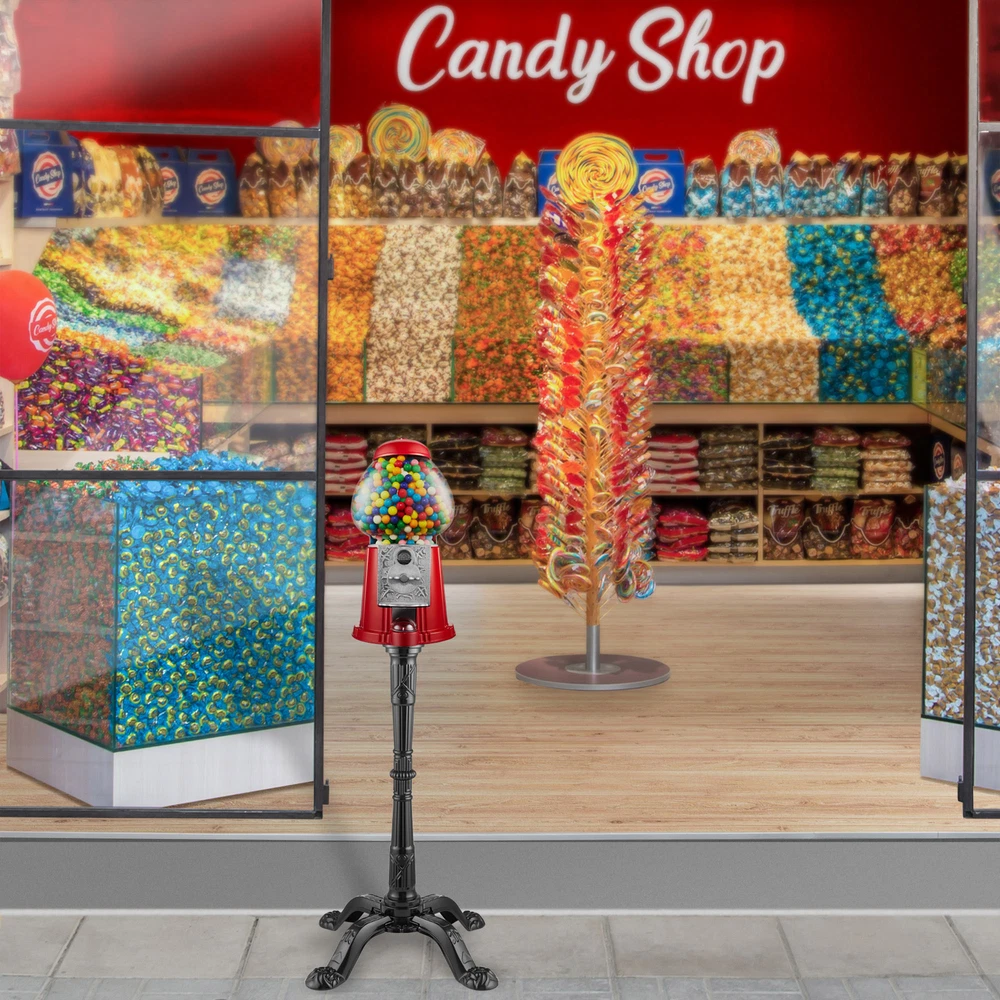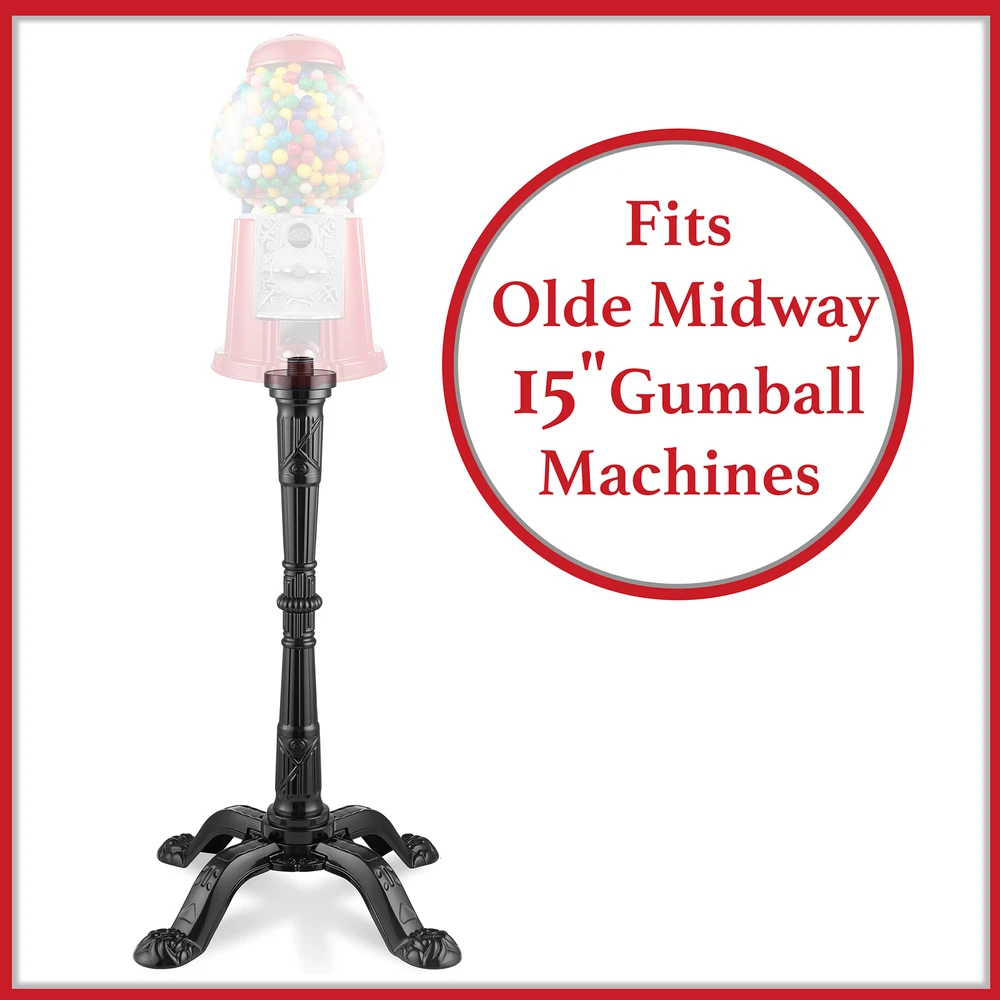 Gumball Machine Stand in Black for 15" Olde Midway Vintage-Style Candy Dispenser Gumball machine stand: Olde Midway's vintage-style gumball machine stand provides a timeless charm with its classic design. This stand is designed to attach to Olde Midway's 15-inch gumball machines. Sturdy base: The heavy-duty design of this stand features a sturdy cast metal construction with a 4 legged base to ensure its longevity and resistance to wear and tear. Easy Assembly: The stand is easy to assemble. The components are designed to fit together seamlessly. Dimensions: Olde Midway's gumball machine stand measures 13" wide x 13" deep x 24" high. Sold separately: Update the look of the Olde Midway 15-inch gumball machine countertop model with this antique-style stand. This gumball machine stand is the perfect companion for the Olde Midway 15-inch gumball machine countertop model, enhancing both its functionality and aesthetics. Crafted with precision to match the machine's vintage-style design, it offers a seamless and stylish display solution. This stand is not only a secure foundation but also adds an element of sophistication to your space. Its easy assembly ensures that you can have your gumball machine up and running in no time, making it an ideal choice for both home and business settings. This stand will elevate your gumball machine to new heights and visual appeal. Olde Midway's gumball machine stand is crafted from cast metal to provide a robust and durable foundation for your gumball machine. With its four-legged design, it offers excellent stability, ensuring that your machine remains securely in place. This stand ensures your machine's safety while adding a touch of classic charm to the candy dispenser display. Dimensions: 13" wide x 13" deep x 24" high Some assembly required. Fast shipping! Most orders ship out the same business day by FedEx, USPS or DHL Global Mail Expedited. Our eBay Store | Terms of Sale