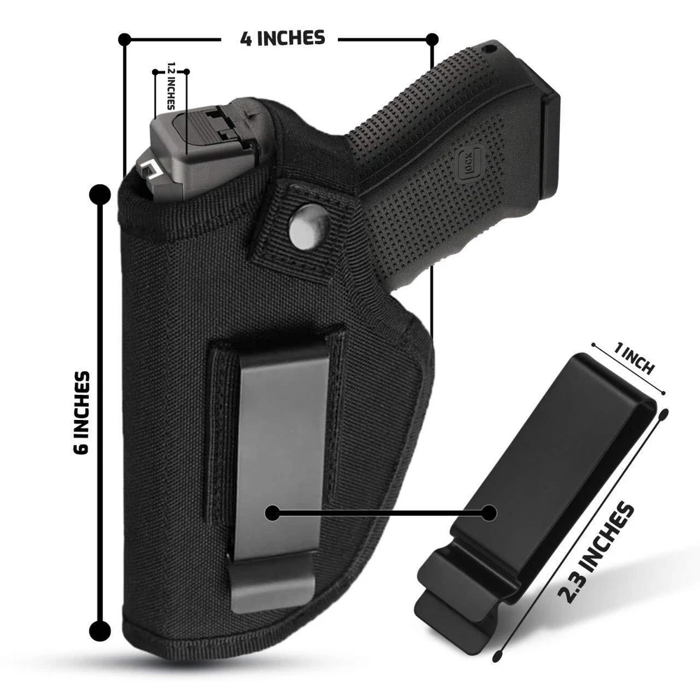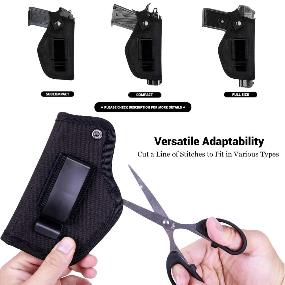 Durable Build: Crafted from tough 1000D nylon, our 9mm holster for men features a resistant Zn-Fe plated button, secure TPU elastic cord, & a versatile 2.3" metal clip for inside or outside waistband placement, adjustable for belts up to 2 inches wide. Innovative Design: Our gun holster for men concealed carry accommodates concealed carry for Compact & Subcompact guns. A simple stitch adjustment allows a snug fit i.e. M&P shield M2.0 with crimson trace needs to trim the initial set of threads ensuring a proper fit. Please Note: This holster may not accommodate firearms with additional attachments, such as lasers, lights, or high front sights. Enhanced Safety: The 9mm gun holster for women and men features special tailoring that prevents your gun from sliding down or budging. Our concealed carry universal holster for men is comfortable to wear, so you never have to worry about safety. Carry Confidently: Crafted for Durability – Our holsters are built to withstand the test of time, ensuring long-lasting use with quality materials & craftsmanship. We support your expectations, & offer easy repays if needed Versatile: Universal design allows for compatibility with various handgun models and sizes.