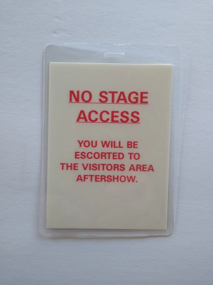 Silver text after show lettering version. Original vintage plastic laminated pass for prior music event. 5" x 3.5". More music related memorabilia for sale in our store. SHIPPING Bundle and save by using cart and making single payment. International buyers are responsible for any import fees/taxes. Combine to save by using the cart!