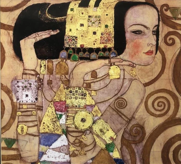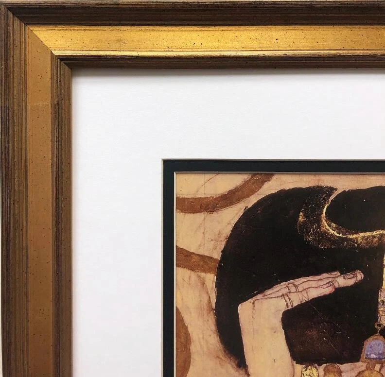 Gustave Klimt "Die Erwartung-Stoclet Fireze" (Tree of Life- Detail) This Artprint is: NEW CUSTOM FRAMED in a gold wood frame Double Matted in Black and White Framed Size : 18" x 17" Image Size: 10.5" x 11.5" Hanging hardware included on back of frame Looking for other framing choices? Contact us! Visit our store for other Gustav Klimt offerings... makes wonderful pairs or groupings! THE FRAMING ALONE IS WORTH OVER $125 Gustav Klimt , (born July 14, 1862, Vienna, Austria—died February 6, 1918, Vienna), Austrian painter, founder of the school of painting known as the Vienna Sezession. After studying at the Vienna School of Decorative Arts, Klimt in 1883 opened an independent studio specializing in the execution of mural paintings. His early work had a classical style that was typical of late 19th-century academic painting, as can be seen in his murals for the Vienna Burgtheater (1888) and on the staircase of the Kunsthistorisches Museum. In 1897 Klimt’s mature style emerged, and he founded the Vienna Sezession, a group of painters who revolted against academic art in favour of a highly decorative style similar to Art Nouveau. Soon thereafter he painted three allegorical murals for the ceiling of the University of Vienna auditorium that were violently criticized; the erotic symbolism and pessimism of these works created such a scandal that the murals were rejected. His later murals, the Beethoven Frieze (1902) and the murals (1909–11) in the dining room of the Stoclet House in Brussels, are characterized by precisely linear drawing and the bold and arbitrary use of flat, decorative patterns of colour and gold leaf. Klimt’s most successful works include The Kiss (1908–09) and a series of portraits of fashionable Viennese matrons, such as Fritza Riedler (1906) and Adele Bloch-Bauer I (1907). In these works he treats the human figure without shadow and heightens the lush sensuality of skin by surrounding it with areas of flat, highly ornamental, brilliantly composed areas of decoration. Nineteenth century Austrian painter Gustav Klimt is known for the highly decorative style of his works, his most famous being The Kiss. His most famous paintings are The Kiss and Portrait of Adele Bloch-Bauer .