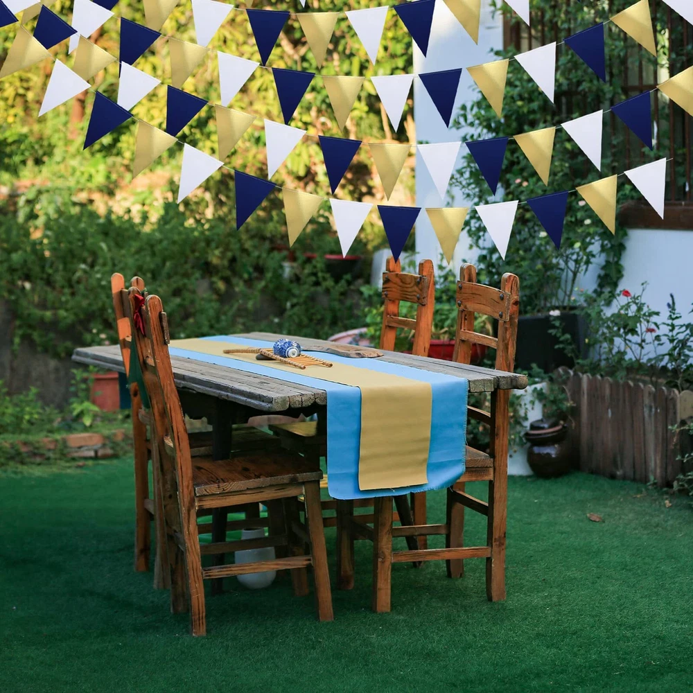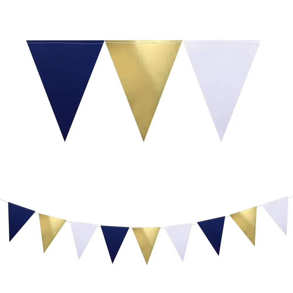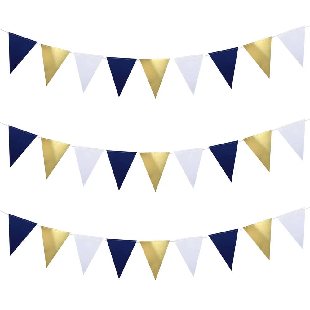 Guzon 30 Feet Navy Blue Gold White Party Decorations,Hanging Glitter Paper Triangle Flag Pennant Banner for Bachelorette Engagement Wedding Party Supplies Baby Shower Decorations Guzon 30 Feet Navy Blue Gold White Party Decorations,Hanging Glitter Paper Triangle Flag Pennant Banner for Bachelorette Engagement Wedding Party Supplies Baby Shower Decorations Package:3 pack of double sided Navy blue,gold,white decorations triangle party banner. Each string is 3 meters with 15 pieces triangle flags,so total is 9 meters = 30 feet and 45 pieces flags. Size of each flag:17cm x 13cm/6.7" x 5.1" (L x W). Our Navy blue Gold white pennant bunting banner are hand-made and machine-sewn together with thread,safe and non-toxic,durable and reusable. Using Occasion - They can be hung from branches and walls,trees,tables,windows or door. Party Supplies-Such as:Graduation Decoration, Birthday,Navy Party, Baby Shower, Wedding, Graduation, Birthday, Bridal Shower, Wedding, Engagement, Bachelorette, Gender Reveal Party Supplies . Shipping from the USA All of our products are shipped from the USA, ensuring quick delivery to your destination. Payment We offer the following payment methods: PayPal, credit card, bank transfer, and eBay's secure payment system. Free Shipping & Free Returns Shipping within the USA is FREE. Additionally, any return is absolutely free for you. Risk-Free Purchase You have the option to return an item within 30 days without any justification. We cover the return shipping costs! Fast Shipping We ship immediately upon receipt of payment. Generally, the package is delivered within 2-3 days in the USA. If it takes longer, we will contact you. Quality and Costs Made in Europe, USA, China No customs fees or additional charges Total satisfaction guarantee Invoice with declared VAT available upon request in .pdf format Feedback Your feedback is very important to us. After you pay for your purchase, you will automatically receive positive feedback from us.