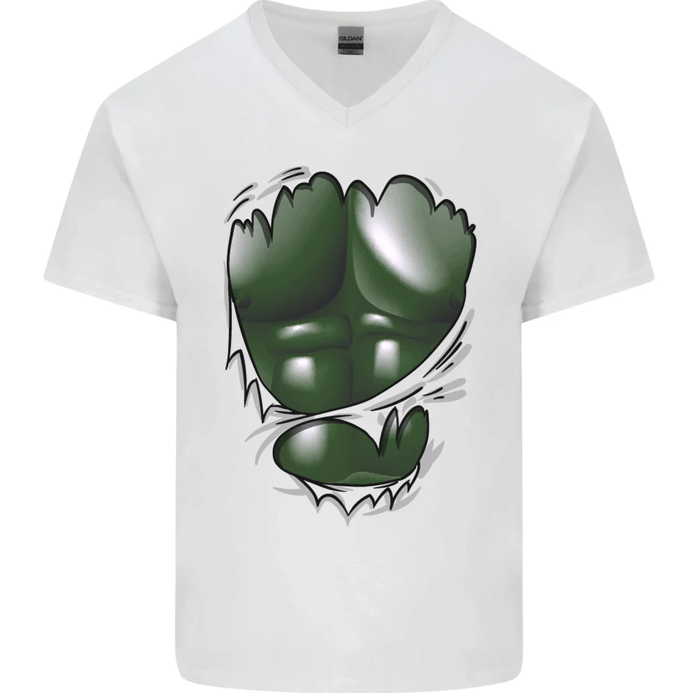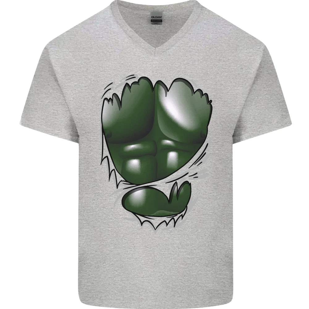 Gym Green Torso Ripped Muscles Effect Mens V-Neck Cotton T-Shirt