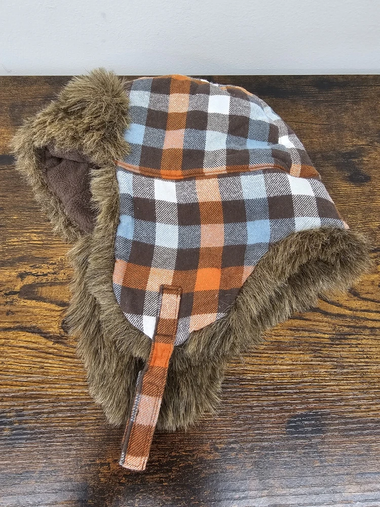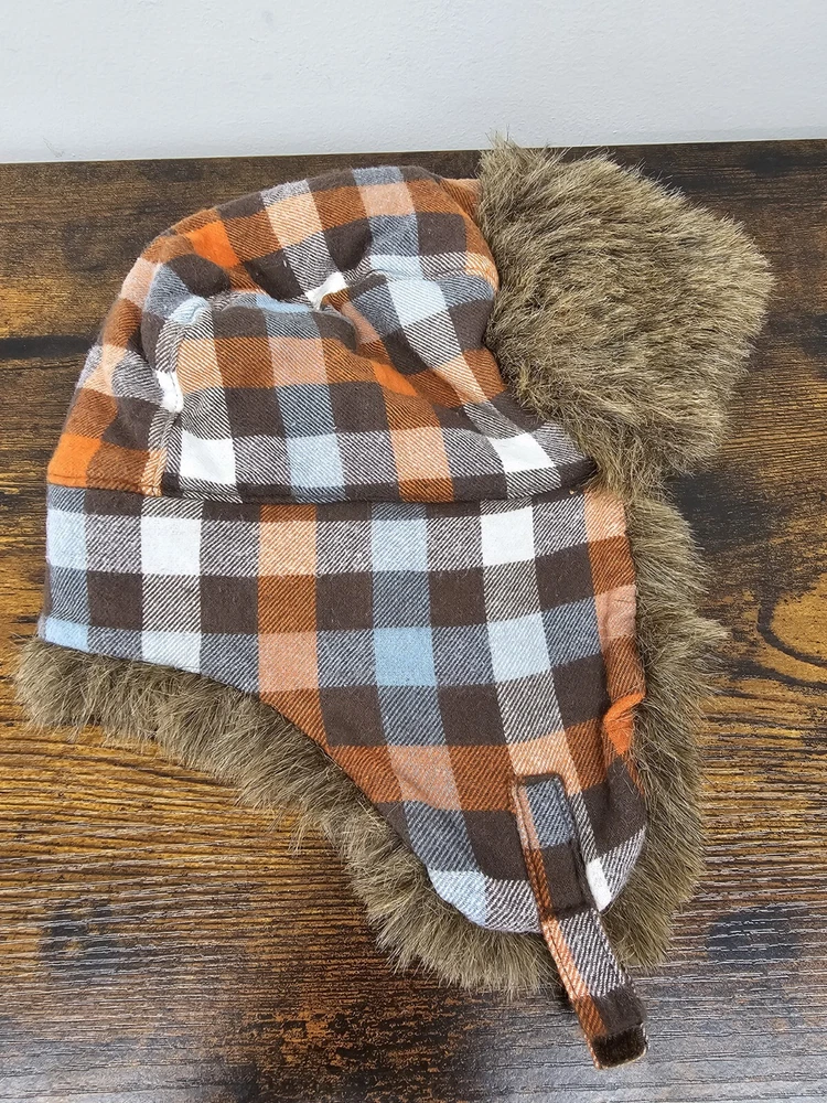 Gymboree Greatest Big Brother Line Orange Plaid Trapper Faux Fur Hat Size 4T-5T