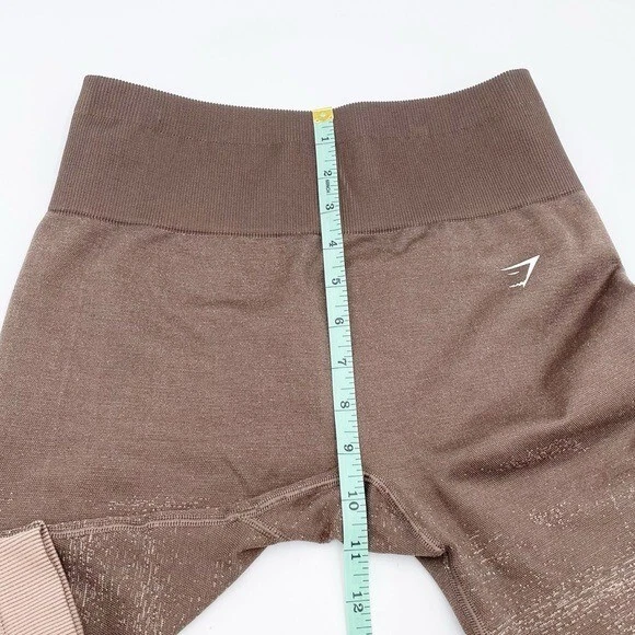 Gymshark Adapt Ombre Seamless Leggings Color: Brown Penny Style: B1A9Y The collection made for lifting, feel confidence that never fades in the latest Adapt Ombre. Sweat-wicking finishing, seamless stretch fabric and zero-distraction designs lets you lift in comfort and support every day, in every way. High waisted Ribbed waistband Knitted construction Sweat-wicking finishing Heat sealed branding to hip 54% Polyester, 36% Nylon, 10% Elastane Size Medium Excellent pre-owned condition Approximate measurements laying flat: Waist: 12" across Rise: 9.5" Inseam: 24"