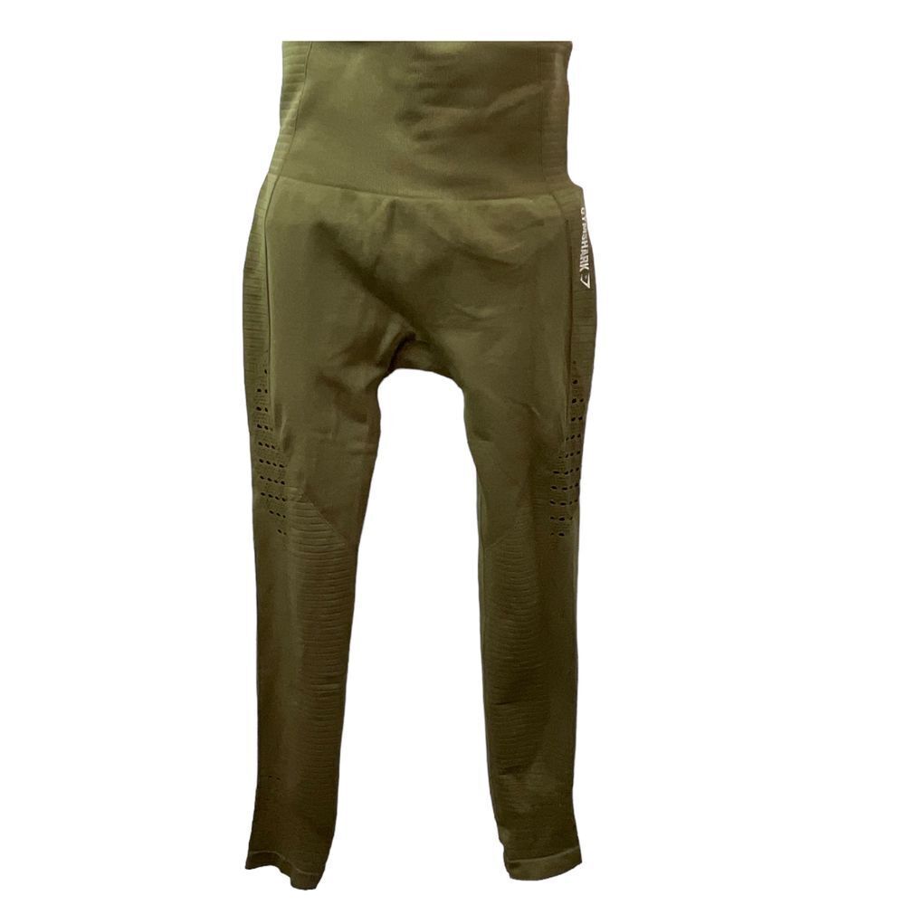 Gymshark Energy Seamless High Rise Cropped Graphic Logo Leggings Olive Green - High waisted - eyelet detailing - glute contouring with mesh structures - ribbed waistband - cropped length - 93% nylon, 7% elastane - see all pics for any wear. these are in pre-owned condition - From Smoke Free Environment - Fast shipping! - Item shown the exact item you will receive. Approx Measurements **No size tag. Use measurements Rise 11" Waist (flat lay) 13" Inseam 28" ** Be sure to Follow us, We post several shoes / items often, and offer discounts when you bundle. **SHIPS FROM FLORIDA :) **Love the item but not the price? Feel free to make an offer! All reasonable offers will be considered.** gymshark high waist legging, gymshark eyelet cropped leggings, workout, school, classic, coastal, simple