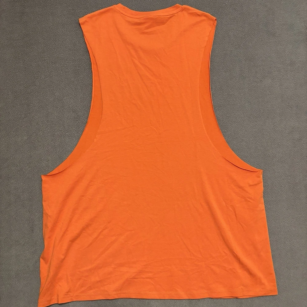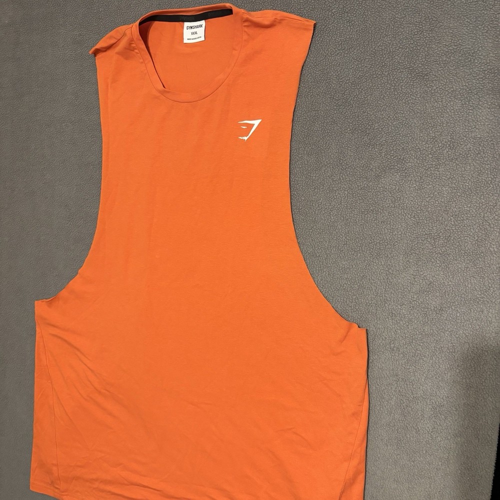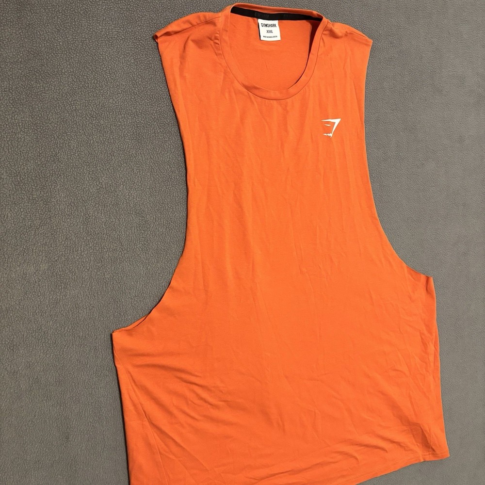 Gymshark Tank Top Men's XXXL Orange Round Neck Sleeveless Athletic Muscle Shirt Well taken care of, only a small black dot on the front top left side (please see pictures) otherwise in great shape! No holes or rips Measurements Pit to pit bottom 25" Top to bottom 32" Ships fast! Thanks for looking!