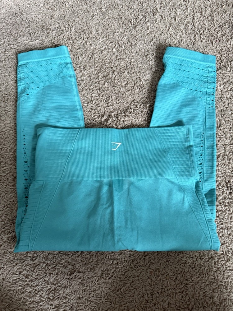 Gymshark Training Cropped Leggings Teal Size Small High Rise Stretchy Activewear
