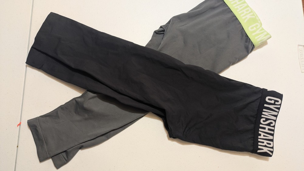 Lot of 2 in Great condition These Gymshark Seamless Cropped Leggings are designed for women in size medium with a low rise waist of 26 inches. The leggings come in a solid black color and feature a seamless construction for added comfort. Made from a blended fabric, these athletic leggings are suited for activewear and have a tapered leg style with a 17.5-inch inseam. Ideal for gym and training activities, these stretchy leggings offer a flattering fit and are perfect for an athleisure style in any season.