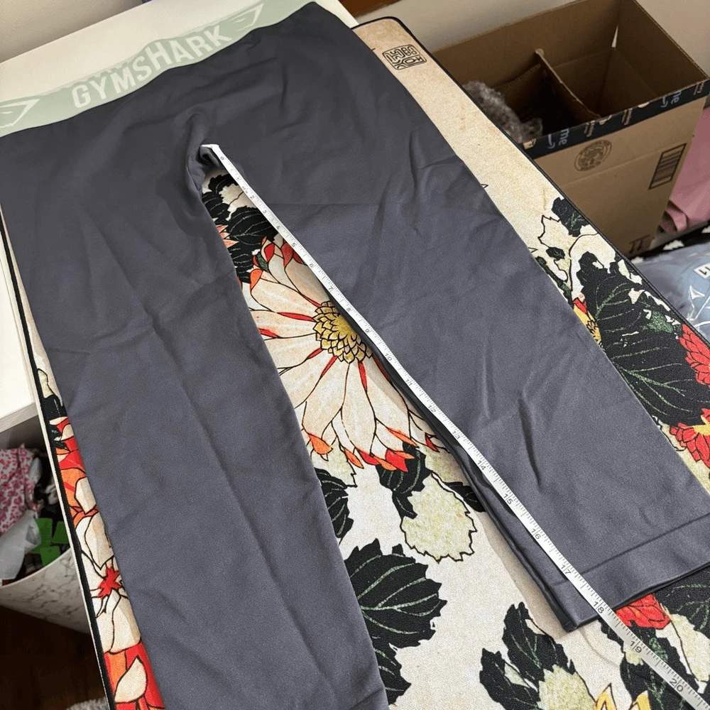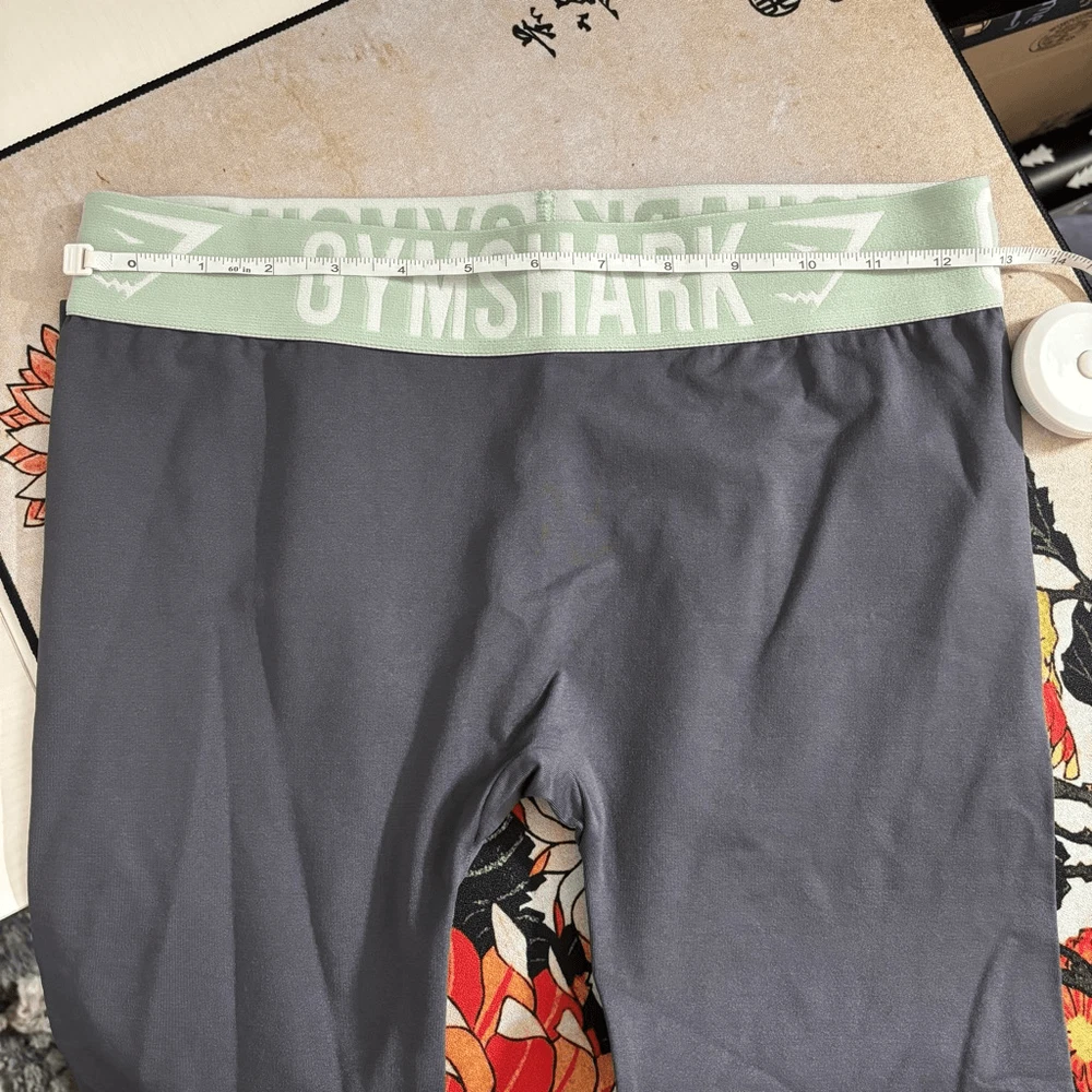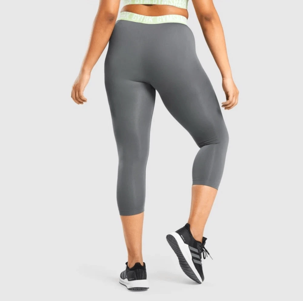 The Fit Seamless Cropped Leggings have been engineered with a seamless knit to provide a liberated range of movement and assured support. Available in gorgeous colourways, these seamless gym leggings are a guaranteed winner for your next cardio workout. Dark gray with a sea foam green and white waistband - Low rise fit - Seamless knit - Elasticated waistband - Jacquard logo - Silicone grip print - 86% Nylon, 14% Elastane NO SIZE TAG.. SEE MEASUREMENTS IN THE PHOTOS! Approximate FLAT LAY! Great condition! No flaws.