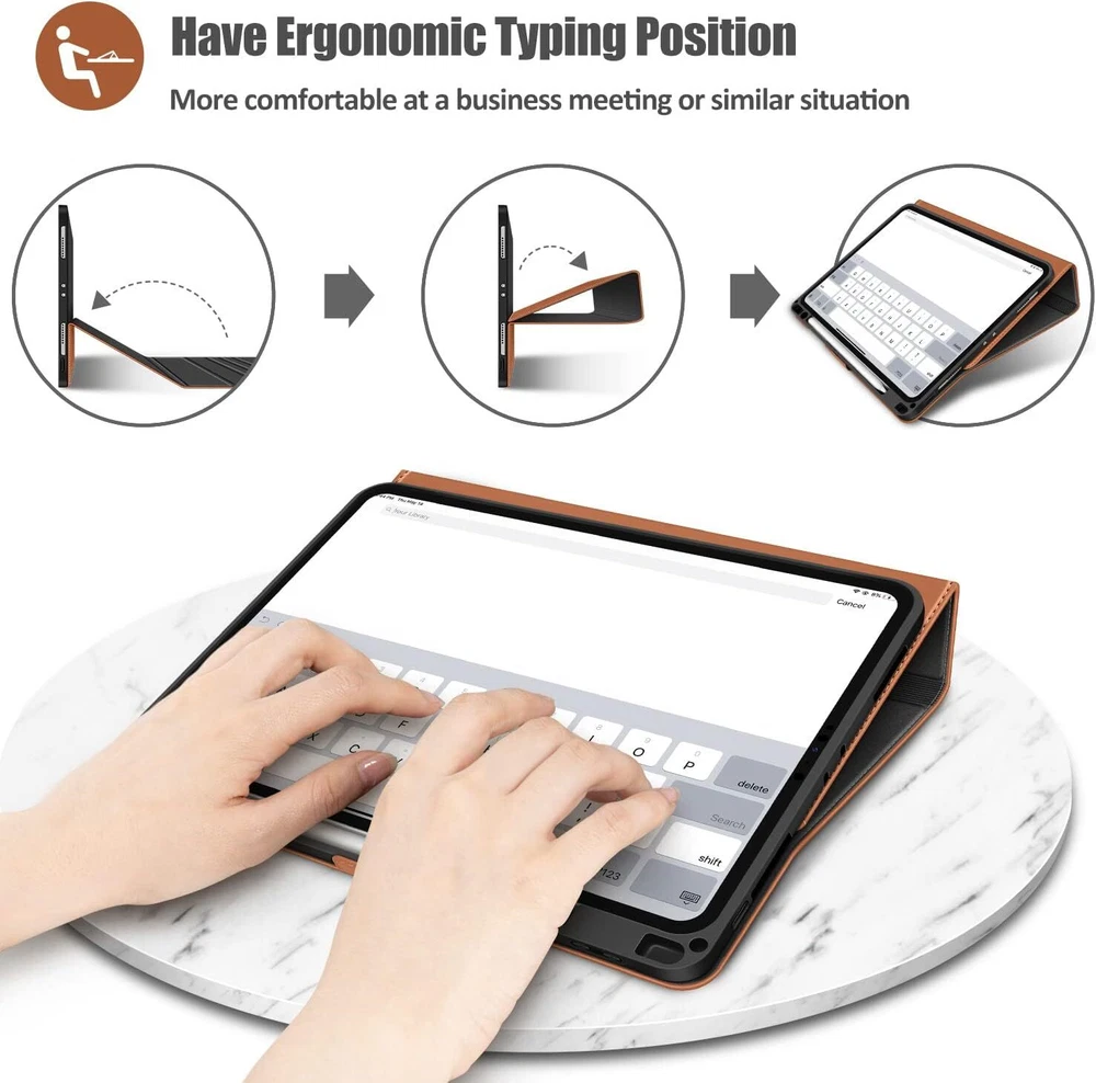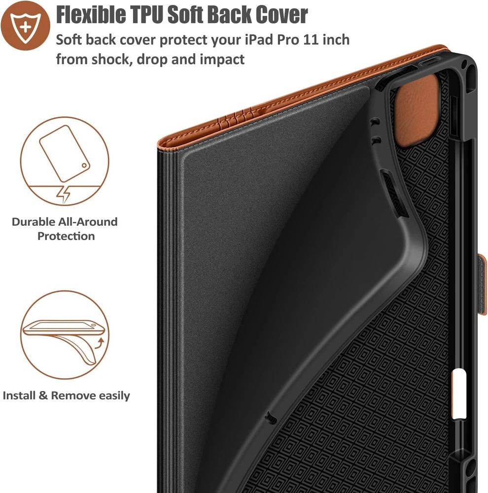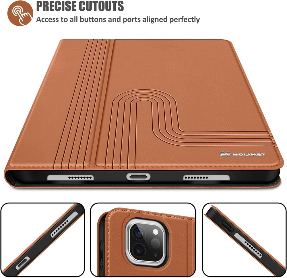 H HOLIMET Case for iPad Pro 11 Inch 2022 4th/3rd/2nd/1st Generation Brown Product Details Standing screen display size: 11 Inches Brand: H HOLIMET Color: Brown Compatible Devices: Tablets Form Factor: Cover Shell Type: Soft 【Compatible Model】Specially designed case for 2022 new iPad Pro 11 inch 4th generation (Models: A2759/ A2435/ A2761/ A2762)/iPad Pro 11 inch 3rd Generation 2021 (Model: A2377/A2459/A2301/A2460)/2020 iPad Pro 11 2nd generation(Model: A2228/A2231/A2068/A2230)/2018 iPad Pro 11 1st generation (Model: A1980/A2013/A1934/A1979). NOT compatible with any other iPad models 【Built-in Apple Pencil Holder】Tightly hold your Apple pencil, supports the Apple Pencil (2nd gen) attached with your iPad Pro 11 inch magnetically to pair and charge. [NOTE DON'T INCLUDE Apple pencil] 【Full Protection】 Premium synthetic leather exterior, flexible TPU soft back cover firmly hold on your ipad, install & remove easily without effort. Durable protect your iPad Pro 11" from scratches and bumps 【MULTI-Angle Viewing &Typing】Anti-slip interior material and deep grooves make the iPad stand securely at three different angles. No slips! Convenient stand position for watching movie or typing 【Magnet Closure Design & Auto Sleep/Wake】Magnetic smart cover supports auto wake & sleep function. And the small magnet clasp keep your iPad closed better for power reduction no need to worry about sudden open