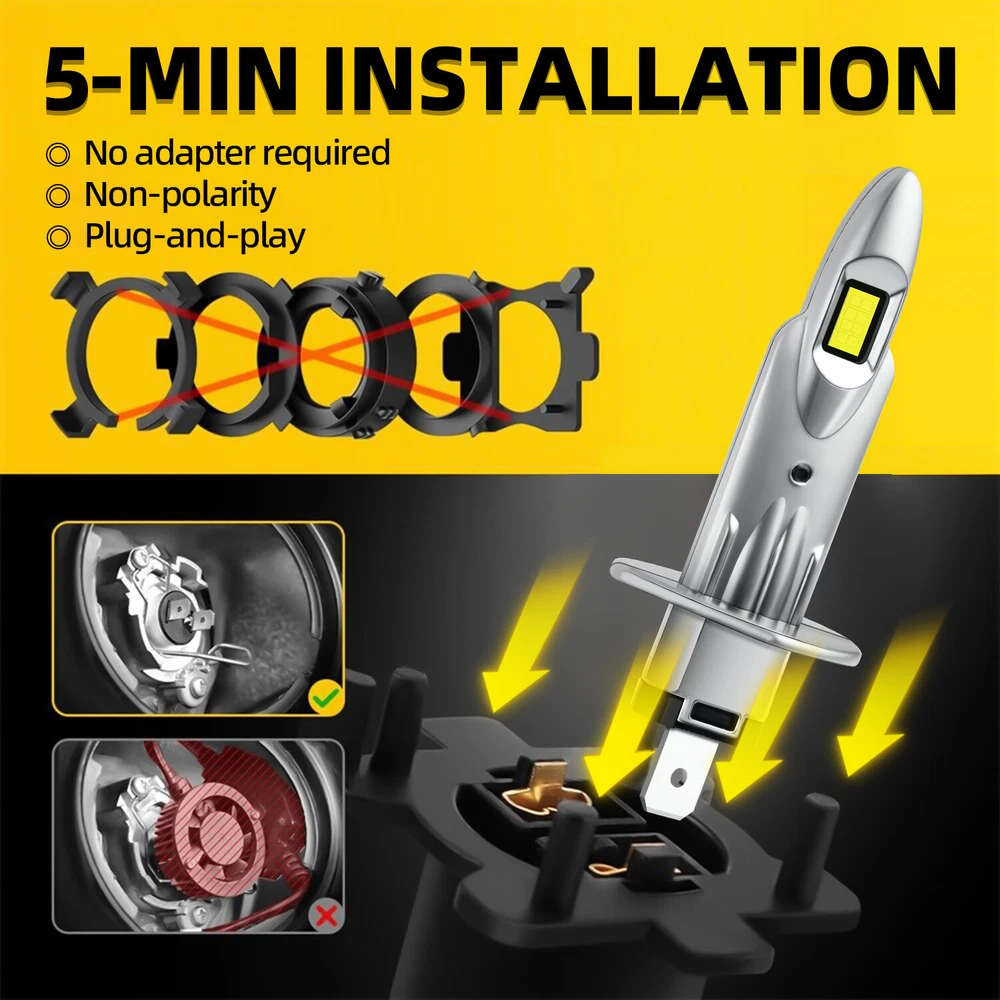 Specification: Brand: Modigt Bulb Size: H1 Usage: Headlights Wattage: 21W Luminous: 15000LM Color Temperature: White 6000K Lifespan: 50000h+ hours Certification: IP67 Dustproof and Waterproof Voltage: DC9V-32V LED type: CSP LED LED Chips: Customized LED chips Operating Temperature: -40℃~+90℃ Application: High and Low Headlights( As long as your bulb type is the same with this) Features: Yetkole H1 Super Bright Bulbs LED Headlights 15000LM 21W High/Low Beam 6000K White 2Pcs Specification: Brand: Modigt Bulb Size: H1 Usage: Headlights Wattage: 21W Luminous: 15000LM Color Temperature: White 6000K Lifespan: 50000h+ hours Certification: IP67 Dustproof and Waterproof Voltage: DC9V-32V LED type: CSP LED LED Chips: Customized LED chips Operating Temperature: -40℃~+90℃ Application: High and Low Headlights( As long as your bulb type is the same with this) Features: *High brightnessr:bulb has 1:1 halogen filament design, apply for the same length and position as the halogen bulb.It focuses light to match the standard beam pattern and does not blind oncoming traffic, no dark spots, or foggy light, 400% brighter than the original halogen bulbs.LED headlight features a better performance on brightness, providing further and wider visibility for you to see the deer, wild animals, falling rocks, or other obstacles in advance to ensure safer driving at night. *Clear Beam Pattern: 1:1 filament design same as halogen bulbs, customzied led chips, same output as halogen bulb with a clear cut off line,No blind oncoming traffic. *Energy-saving: Brighter light output with much less power consumption. *Efficient Cooling System: cooling system with With a copper base board, cold pressed aluminum heat sink.The whole aviation aluminum lamp body, built-in single copper tube,using integrated radiator and aluminium body self-cooling, waterproof and heat-proof.Better solve the dimming or over heated of led bulbs.Whole aviation aluminum body,Intelligent IC make sure the LED conversion kits last longer. *Simple installation: Our LED headlight bulbs with compact size and non-polarized design can make you install them in minutes,Plug and play. *Waterproof:IP67 water-resistant and designed for use in heavy rains, rainproof housing, can work even in extreme cases, it can work normally.Automatic short circuit protection. Install Caution: 1. As a safety precaution, make sure that the car has had time to cool down properly before starting the installation process. 2. Put the vehicle into park or make sure it is securely in gear. 3. Make sure to have the ignition turned off and the keys removed. 4. Be careful to avoid burns, especially when turning on or off the vehicles lighting. 5. Be careful to avoid crushing or cutting the bulbs. Also make sure to not touch the bulbs with your fingers, as this will cause blotting. 6. Fully examine the connection of the contact points, ports and the wires as faulty connections can cause lighting problems. 7. Make certain that the end of the bulb does not come in contact with the interior light shield of the headlight when adjusting the bulb. Packaging include: H1 LED headlight*2 Note: Please check the description and compatibility chart before your purchasing. Please check the size of your bulbs on your vehicle before purchasing. Please make sure the headlight housing has enough space for installation before purchasing. Professional installation is highly recommended. If you have any questions, please feel free to contact us. Item Specifics Brand Modigt Bulb Size H1 Placement on Vehicle Front , Left, Right Suitable For Headlight High or Low Beam Number of Bulbs 2 Color White Type Light Bulb, LED Headlight Manufacturer Part Number H1 Voltage DC9V-32V Color Temperature 6000K Lumens 15000LM Lighting Technology LED Fitment Type Direct Replacement Universal Fitment Yes Waterproof Rating IP67 Dustproof and Waterproof Manufacturer Warranty 2 Years Wattage 21W Beam Type High\Low Beam To Fit Headlight Bulb Life Hours Up to 50,000 Hours Material Aviation aluminum LED Chips Customized LED chips LED Type CSP LED Features1 As long as your bulb type is the same with this Features2 High brightness, long life, low fuel consumption Features3 Good focus intensity and long distance illuminating Operating Temperature -40°C ~, 90°C Package includes 2xH1 LED Headlight Payment 1. It will be much appreciated that you finish your payment asap or it will make UPI(unpaid item case) on your account leading to be suspended or restricted by eBay when those UPI cases carry over to certain amount. 2. Any problems please contact us for more details. Shipping We do appreciate your purchase here. If you are astisfied with the item as well as our service, please kindly leave us a Positive Feedback to help develop our business. Thank you in advance. Returns 1. All items will be shipped to buyer's ebay address. 2. All items will be shipped within 24 working hours upon receipt of payment, and multiple items will be combined shipping. 3. In most cases, delivery takes around 3-5 business days, it's highly depended on the efficiency of the shpping carrier. If your item doesn't arrive on time, please contact us immediately for further assistance. Please note there is no local pickup service available. Contact Us 1. We care about our valued buyers, if you have any questions, our Customer Service staff will be very glad to help you. We try our best to reply your ebay message as soon as possible, please kindly allow 24 hours for us to response. 2. Our goal is to make sure you are a happy buyer and pleasant shopping with us. Please contact us before leaving any 1 or 2 star ratings, negative feedback or open any dispute. We understand the concerns and frustrations you might have, and will do our endeavor to resolve the issues. Yetkole DESCRIPTION PAYMENT SHIPPING RETURN POLICY CONTACT US H1 Super Bright Bulbs LED Headlights 15000LM 21W High/Low Beam 6000K White 2Pcs Specification: Brand: Modigt Bulb Size: H1 Usage: Headlights Wat