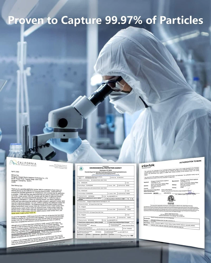[High Efficiency Air Purifiers] Breathe in the fresh air with large room air purifiers that cover an area up to 2200 sq.ft in just 1 hour. Home air purifiers refresh the air 5x per hour, and feature a powerful 3-stage filtration system consisting of a pre-filter, HEPA filter, and activated carbon filter. [Fragrance Sponge & Washable filter cover] The top of the air purifier is equipped with an essential oil cotton pad, you can drop your favorite essential oil, which can help you sleep or refresh yourself. The washable filter cover can be washed directly with water. [3-Fan & 5 Timers] Air purifier offers three gears of air flow for you to choose from - low, medium, and high. Not sure which fan to choose? Air Purifier Auto Mode can automatically adjust fan based on real air quality. 5 timer options (2/4/6/8/12H) are convenient for your life. [Air Quality Display] Smart air purifiers feature a built-in air quality sensor that displays real PM2.5 levels on the air purifiers display screen. Enjoy peaceful and undisturbed moments with our ultra quiet air purifier. The lowest working noise is ≤15dB, it ensures a serene environment for your home [Filter Reminder] Air purifier has a filter replacement reminder function. When the filter reaches its service life, the FILTER will light up red and flash to remind you that needs to be replaced. Just press and hold the "FILTER" button for 3-5 seconds, and the red flashing will disappear. Power Source: Corded Electric Working voltage of purifier: 120V