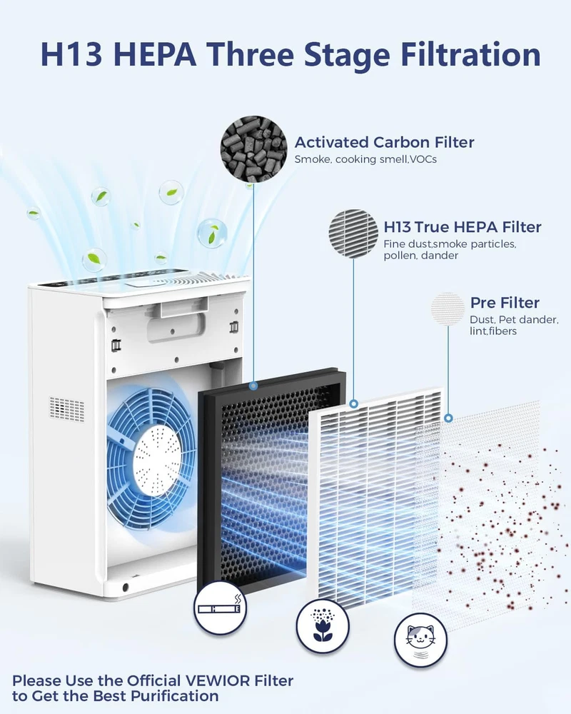 H13 HEPA Air Purifier for Home Large Room 2200 sqft Quiet Smoke Pollen Filter